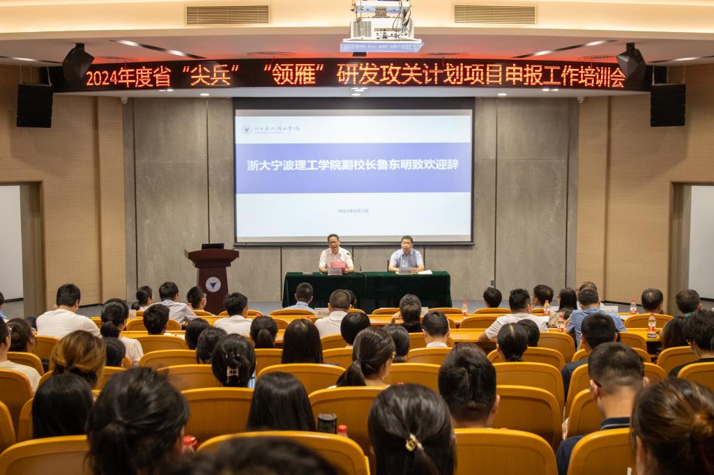 为做好2024年度省“尖兵”“领雁”研发攻关计划第一批项目申报推荐工作,9月7日,由市科技局组织召开的2024年度省“尖兵”“领雁”研发攻关计划项目申报工作培训会在浙大宁波理工学院举行。各区(县、市)、开发区科技管理部门,在甬高等院校、科研院所、医疗机构相关负责人及具有申报条件的企事业单位代表近400人参加培训。