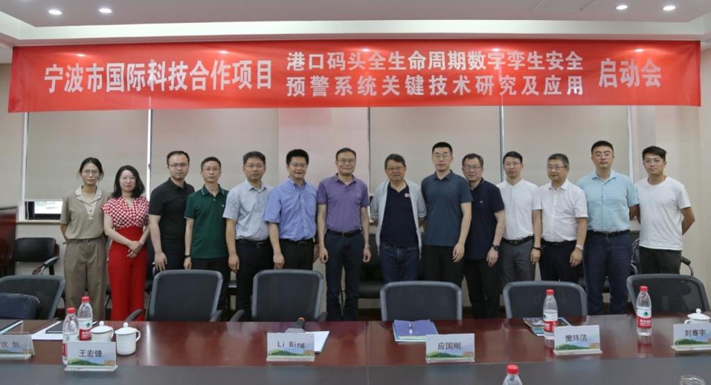 6月16日下午,土建学院院牵头承担的宁波市国际科技合作项目《港口码头全生命周期数字孪生安全预警系统关键技术研究及应用》启动会在SA306会议室召开。学校副校长张荣祥,智慧化港口与服务学科群首席科学家谈建教授,土建学院执行院长、国际科技合作基地执行主任王银辉教授,外方负责人新加坡南洋理工大学Li Bing教授,项目合作单位宁波镇海港埠有限公司工程技术部经理王宏锋和宁波朗达工程科技有限公司董事长应国刚等专家学者参加。