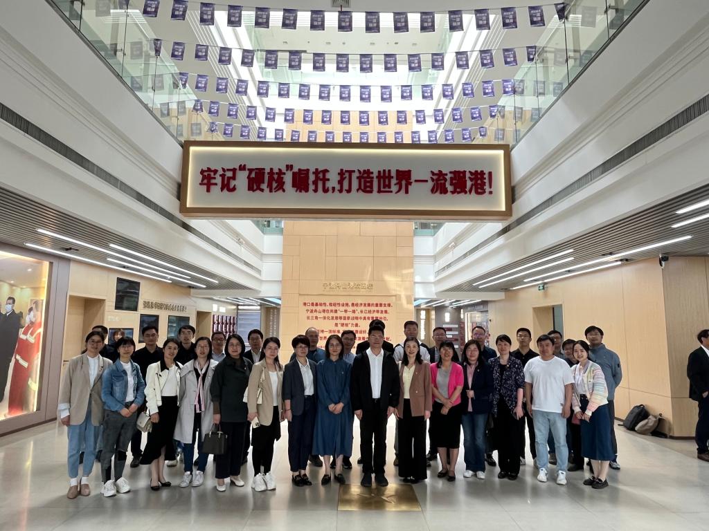 2020年3月29日下午,习近平总书记到宁波舟山港穿山港区考察,登上12层室外平台举目远眺,走进码头考察航运情况,在办公大楼同港口工作人员交谈并发表重要讲话。主题教育读书班全体学员寻足迹学思想,在办公大楼一楼大厅认真聆听讲解,重温习近平总书记2020年3月考察穿山港区时的重要讲话精神,深切感悟锻造“硬核”力量、打造一流强港的殷切嘱托;在室外平台,集装箱码头繁忙景象一览无余,大家全面了解穿山港区港口运输、港铁联动等方面情况,深刻感悟深水大港在“两个循环”中的重要枢纽作用;在港口陈展区,学员们通过大屏幕详细了解宁波舟山港的港口分布全貌,深刻感悟在习近平总书记亲自推动下从宁波、舟山两港到宁波舟山港一体化高标准迈向世界强港的发展历程。学习现场,学校智慧化港口与服务学科群首席科学家谈建教授结合学科群建设规划表示,学科群将着力汇聚学校涉港高水平特色学科优势,聚焦服务宁波舟山港一流强港建设、宁波国际重要港口城市建设定位,积极推进与宁波舟山港的深度合作,为区域经济社会发展作出新贡献。