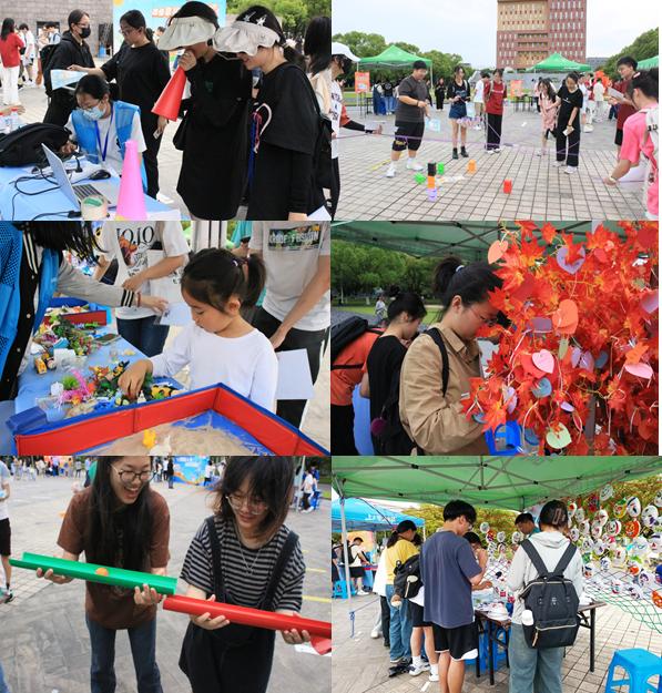 此次心理嘉年华以“感悟幸福 乐享青春”为主题,以心理学理论为基础,聚焦情绪/压力管理、人际/团队关系、积极/正向心态、自我/内在探索等四个方面,设计了体验类、创作类、挑战类、探索类等二十余项活动,旨在引导师生关注自身与他人心理健康,科学掌握获取幸福人生的心理密码,培育师生积极向上的健康心态。活动现场精彩纷呈的趣味心理活动或以音乐震撼心灵,在心声电台的曲曲回旋中重新认识自我;或考验团队协作能力,在合力搭建的信任互助中携手同行;或凸显创意手工制作,在笑对人生的涂涂画画中展现心灵的流光溢彩;或促进自我释放,在心花怒放的大声呐喊中绽放快乐,氛围活泼轻松,大家在欢声笑语中卸下心灵的桎梏,在这里遇见不同的自己,遇见不同的青春。