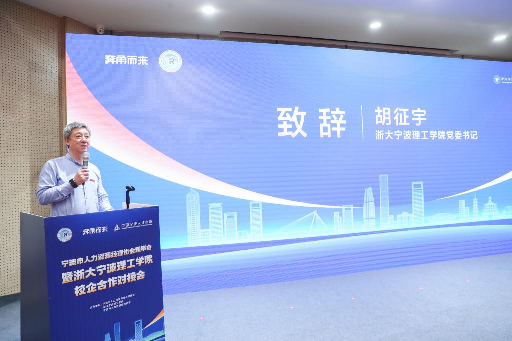 胡征宇代表学校对各位领导、企业家关心学生发展推动就业工作表示衷心的感谢。他指出,学校坚持“为国家和地区培养卓越专业人才”,扎根宁波大地办大学,积极探索创新人才培养模式,多年办学毕业生得到社会的认可,在产教融合、联合人才培养等方面,与宁波企业开展了一系列卓有成效的合作。他表示,学校将以本次对接会为契机,聚焦人才培养关键点、薄弱点,深化产教融合、校企合作,持续推进校企互信合作,实现优势互补、资源共享、双方共赢。