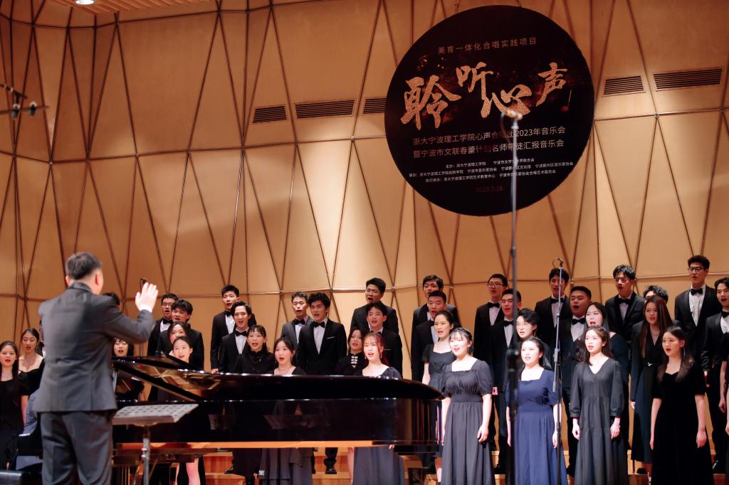 3月28日晚,浙大宁波理工学院“心声”合唱团2023年音乐会暨宁波市文联春蕾计划名师带徒项目汇报音乐会在宁波音乐厅圆满落幕。浙大宁波理工学院“心声”合唱团、宁波鄞州“星光”合唱团为观众们带来了一场美妙的合唱艺术视听盛宴。活动由浙大宁波理工学院与宁波市文联共同主办。