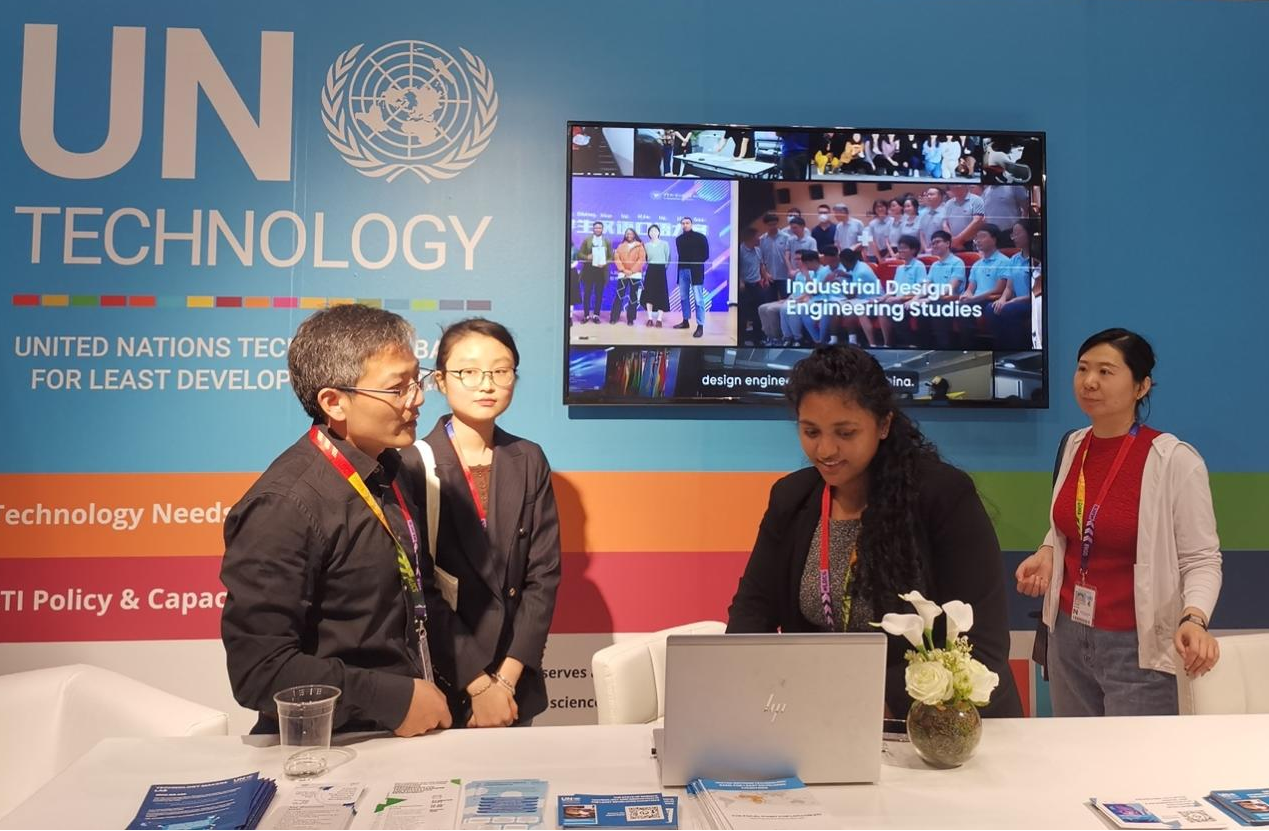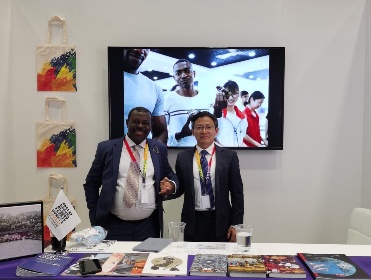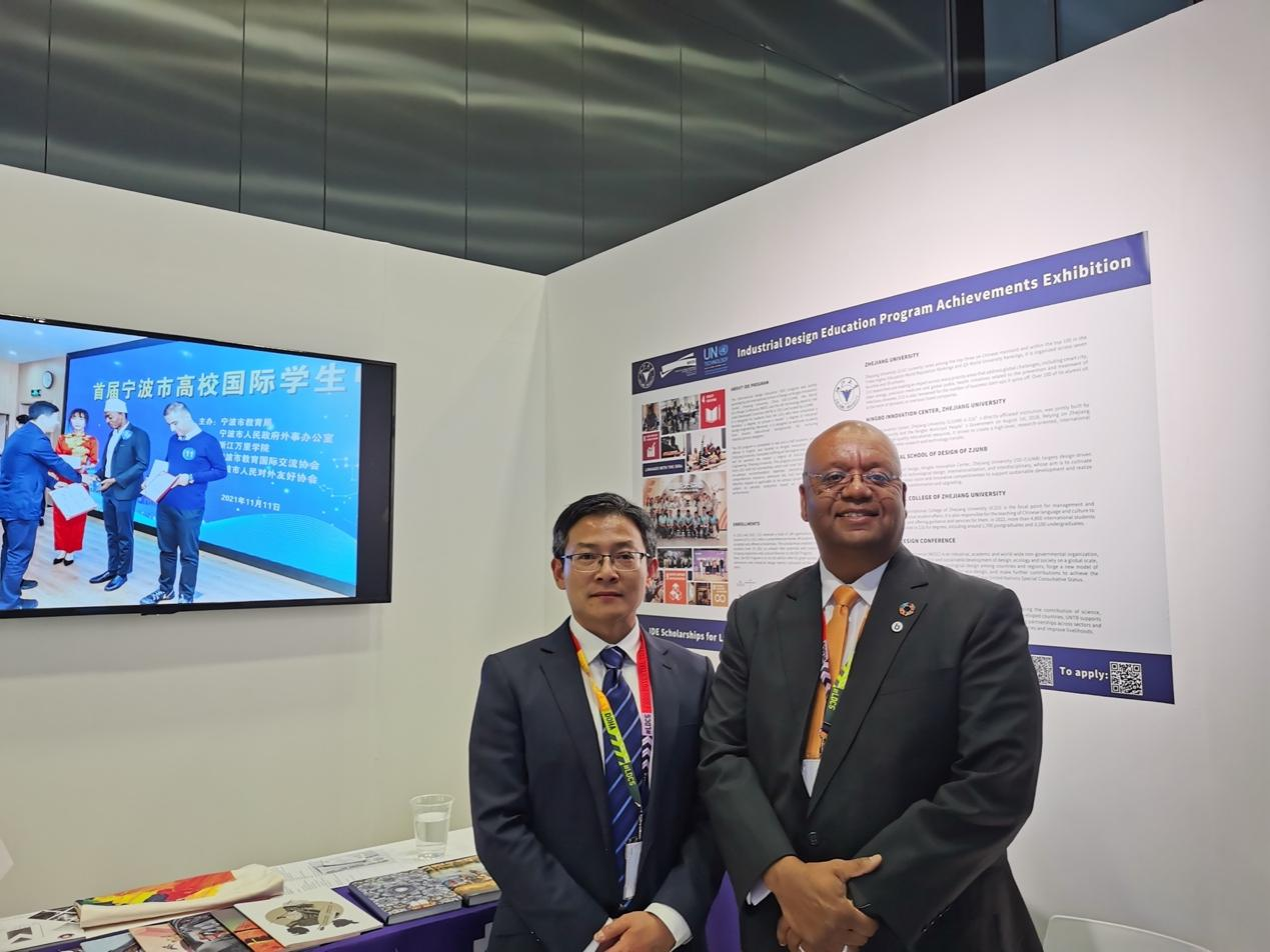 会议期间,我校积极与国际组织、中国驻外机构、参展单位、国外高校建立联系,介绍宁波现代化滨海大都市发展情况,推广宁波校区及我校国际学生培养项目。设计学院院长罗仕鉴教授与联合国最不发达国家技术银行代理执行干事塔费尔·特斯法丘博士就国际学生项目发展方向和工作推进等事宜进行磋商,并接受联合国新闻采访。