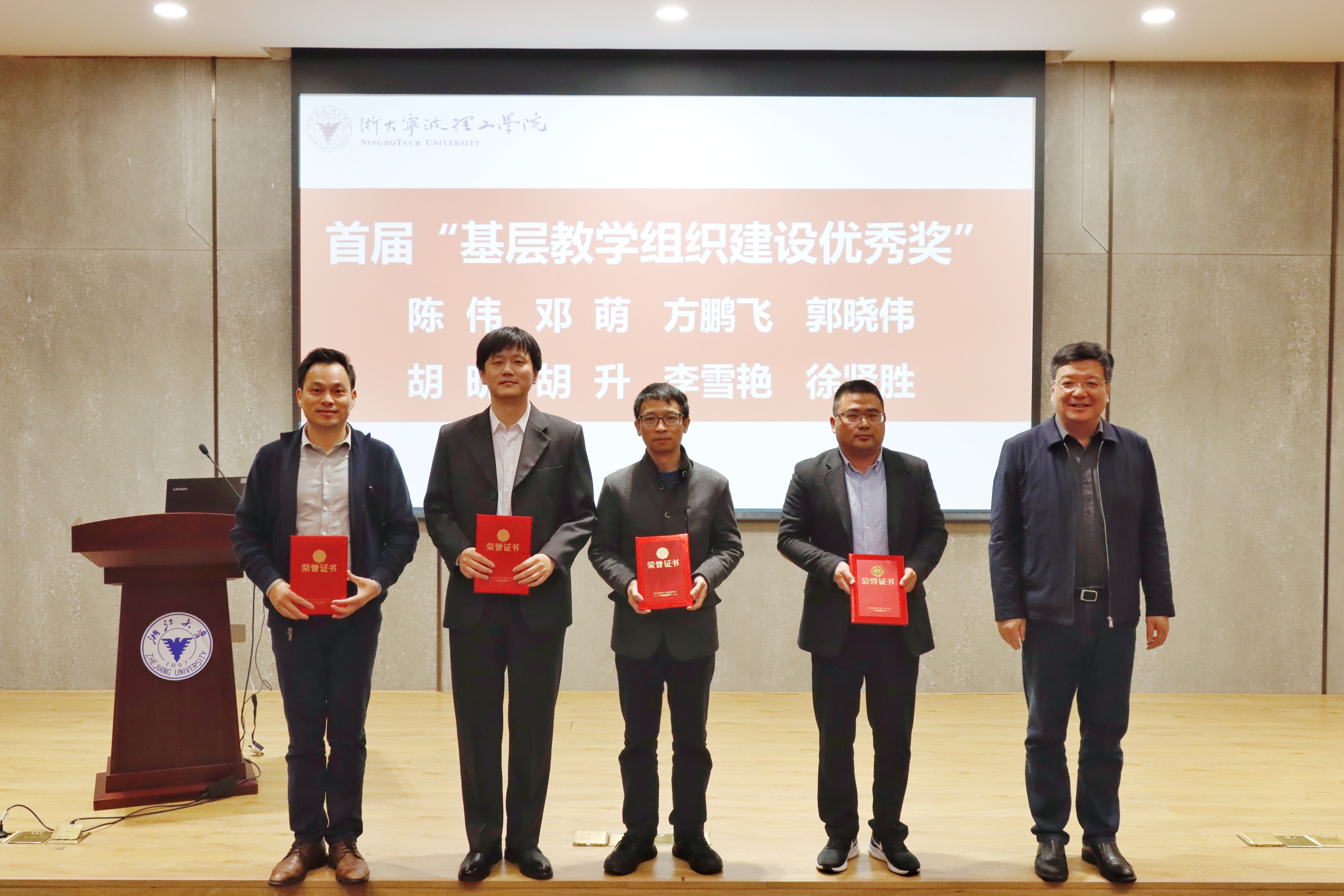 会议对学校首届教学工作系列优秀获奖个人进行了表彰。王文军等七位教师获“教学管理优秀奖”,陈伟等八位教师获“基层教学组织建设优秀奖”,方鹏飞等获“十大优秀教案奖”。
