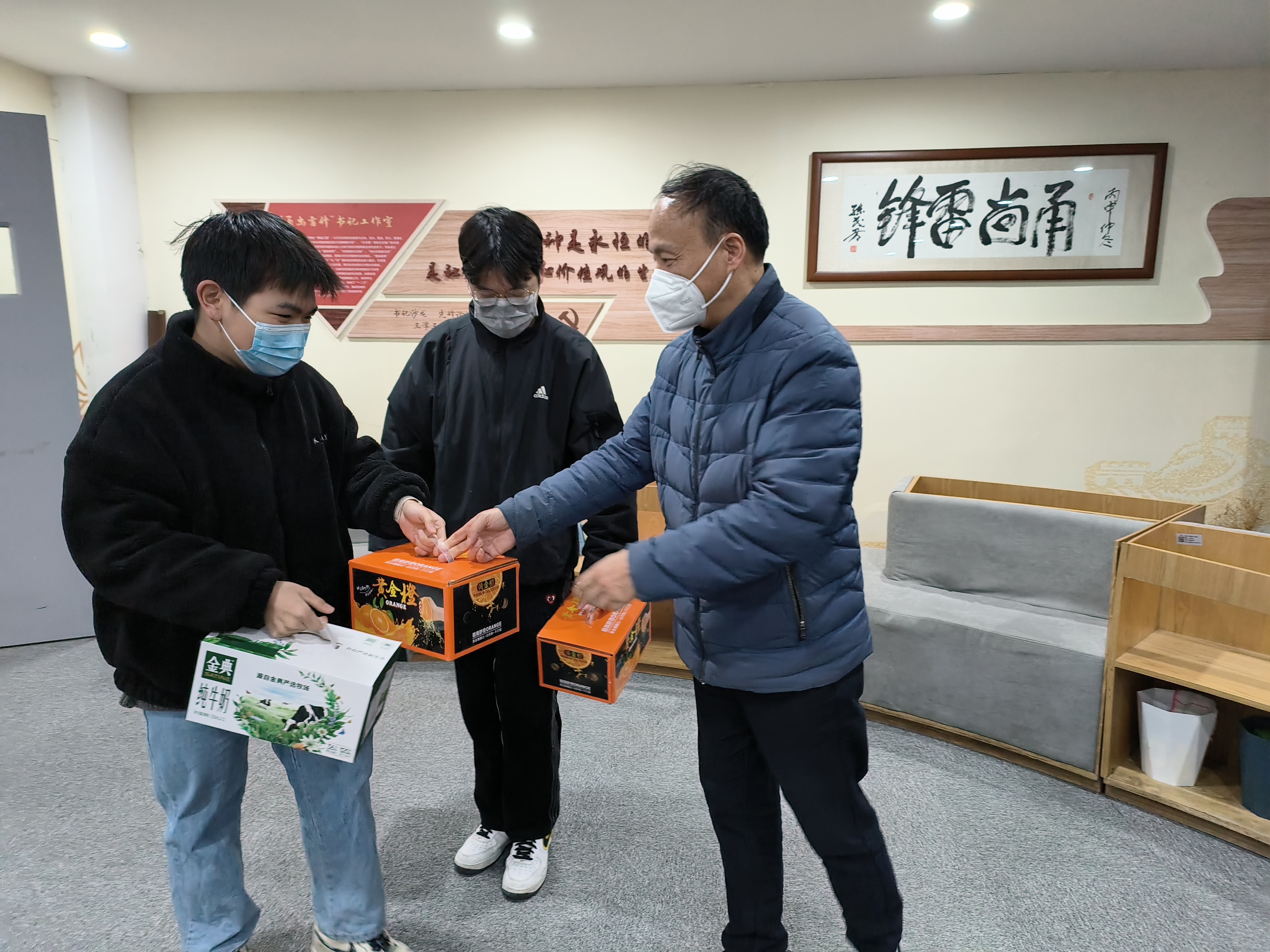 冯建波介绍了学校假期安排和服务保障方面的情况,叮嘱留校学生要继续做好自己健康的第一责任人,代表学校给同学们拜年,希望同学们在校期间遵守纪律,保持与家人和老师的联系,合理安排作息,用好假期时间学习充电,度过一个平安快乐充实的假期。