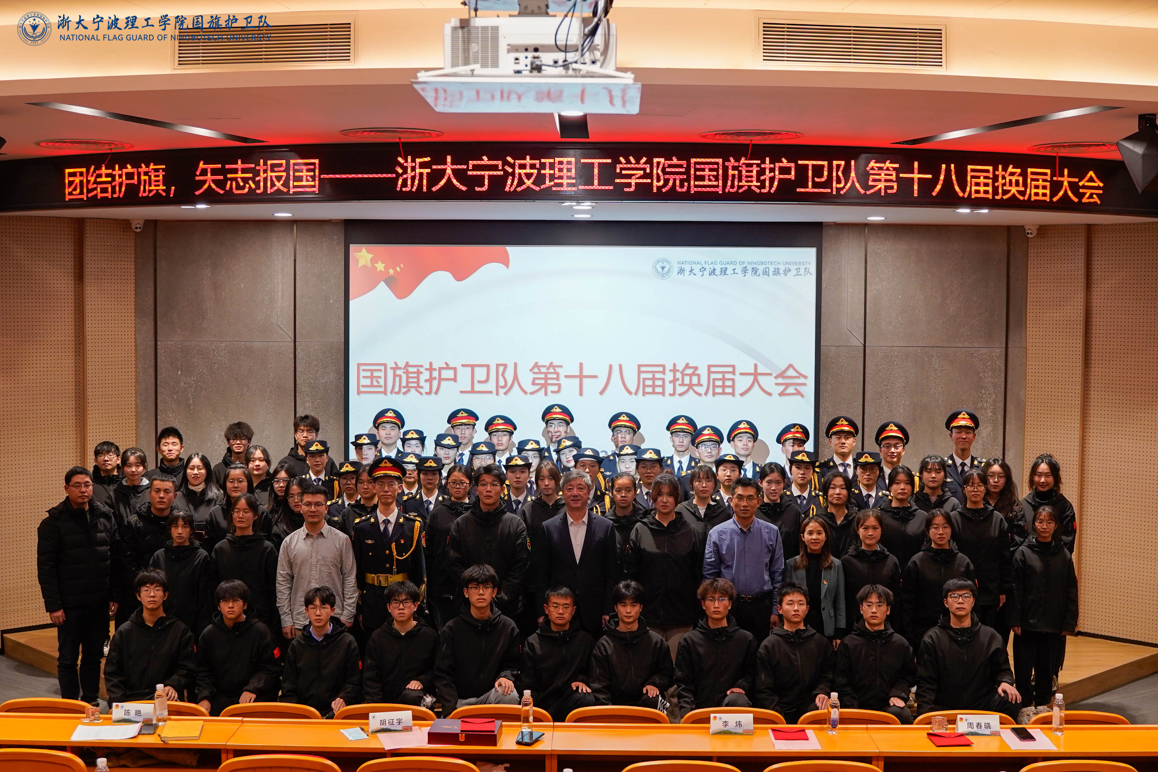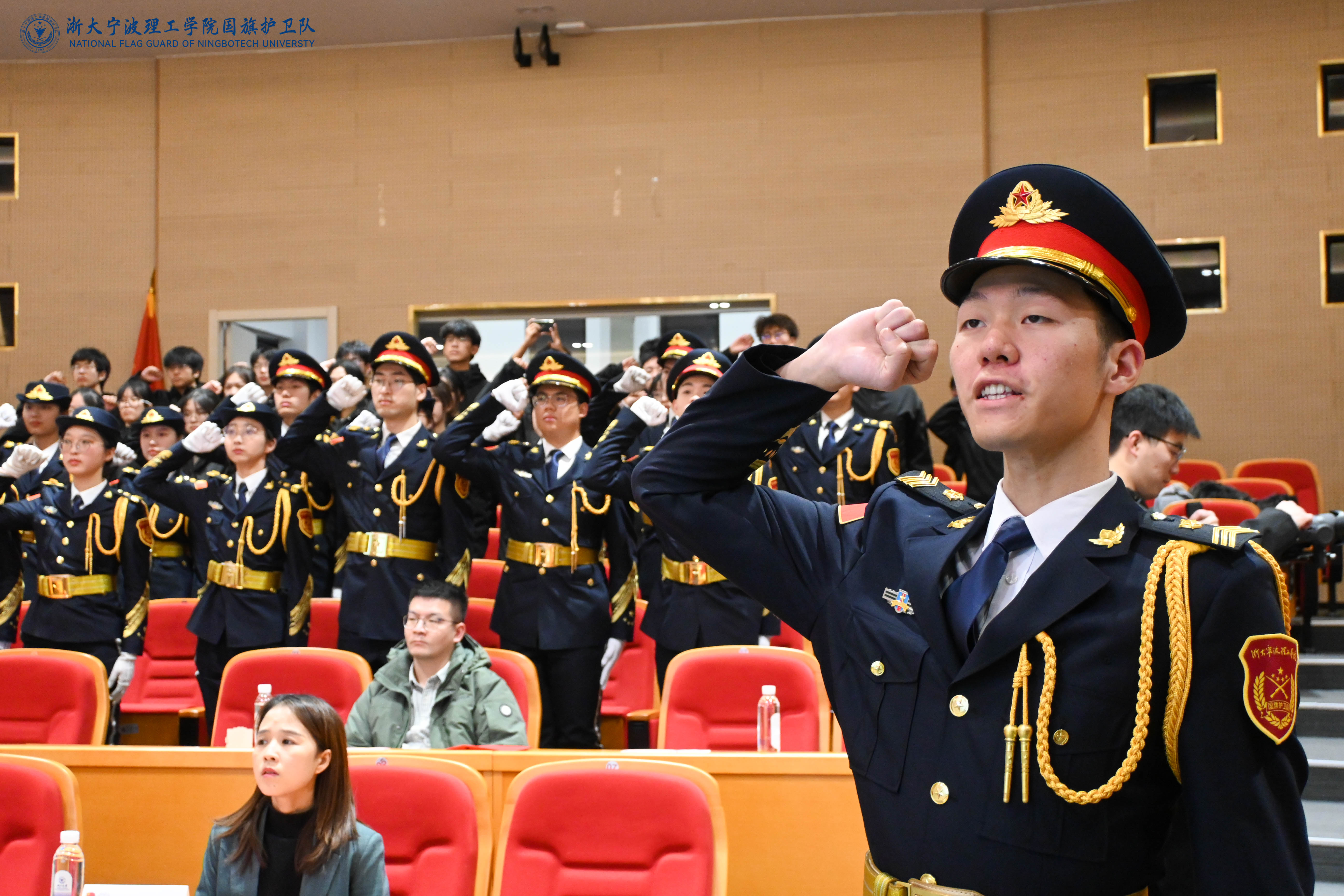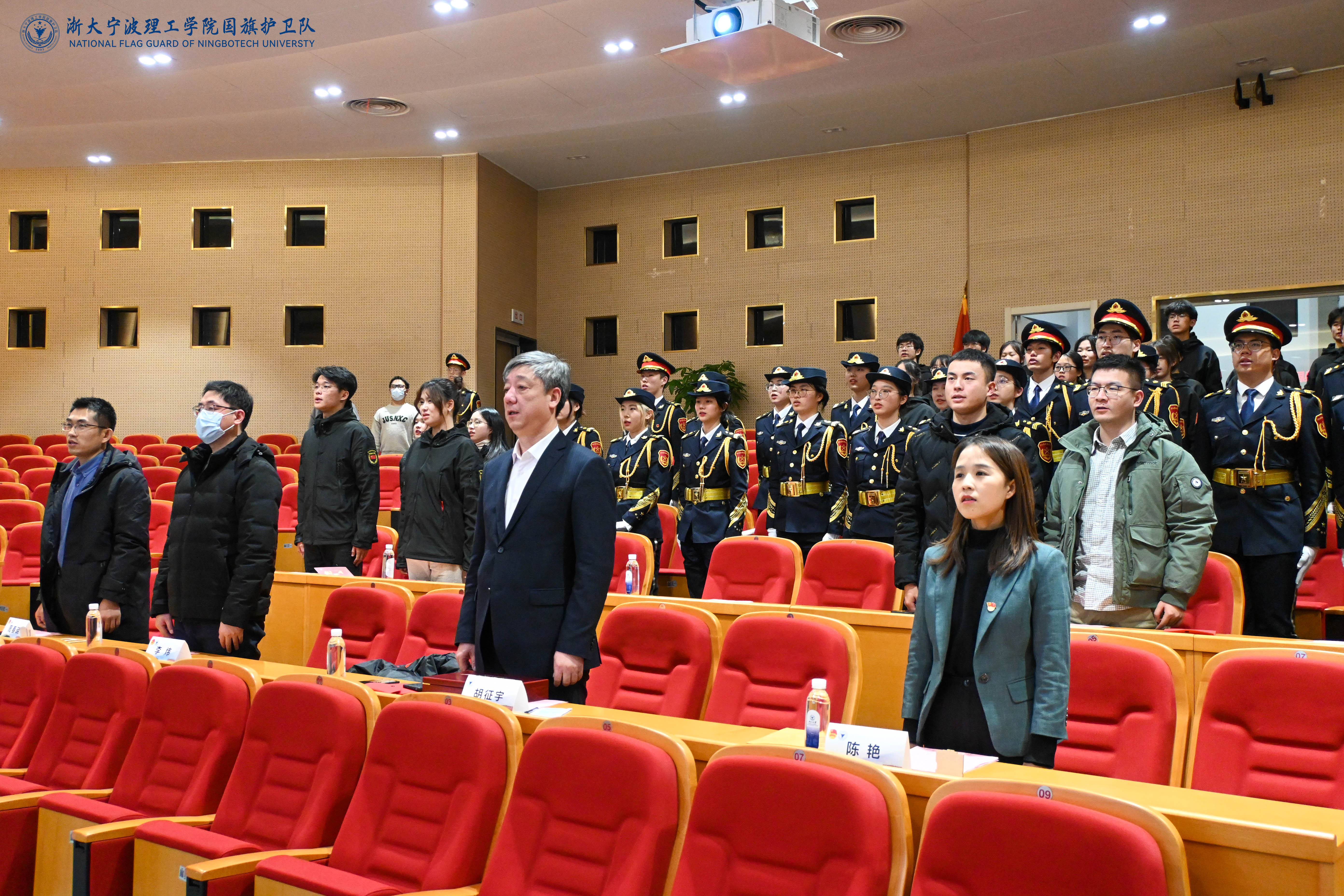 12月13日晚,“使命交替,薪火长燃”浙大宁波理工学院第十八届国旗护卫队换届大会于启新大讲堂举行。学校党委书记胡征宇、宣传部部长李炜、团委书记周春晓、团委业务副主管陈艳、团委专职团干部梅呈龙老师以及兄弟院校浙江药科职业大学国旗队队员代表出席本次大会,我校第十七届和第十八届国旗护卫队全体成员参加本次大会。