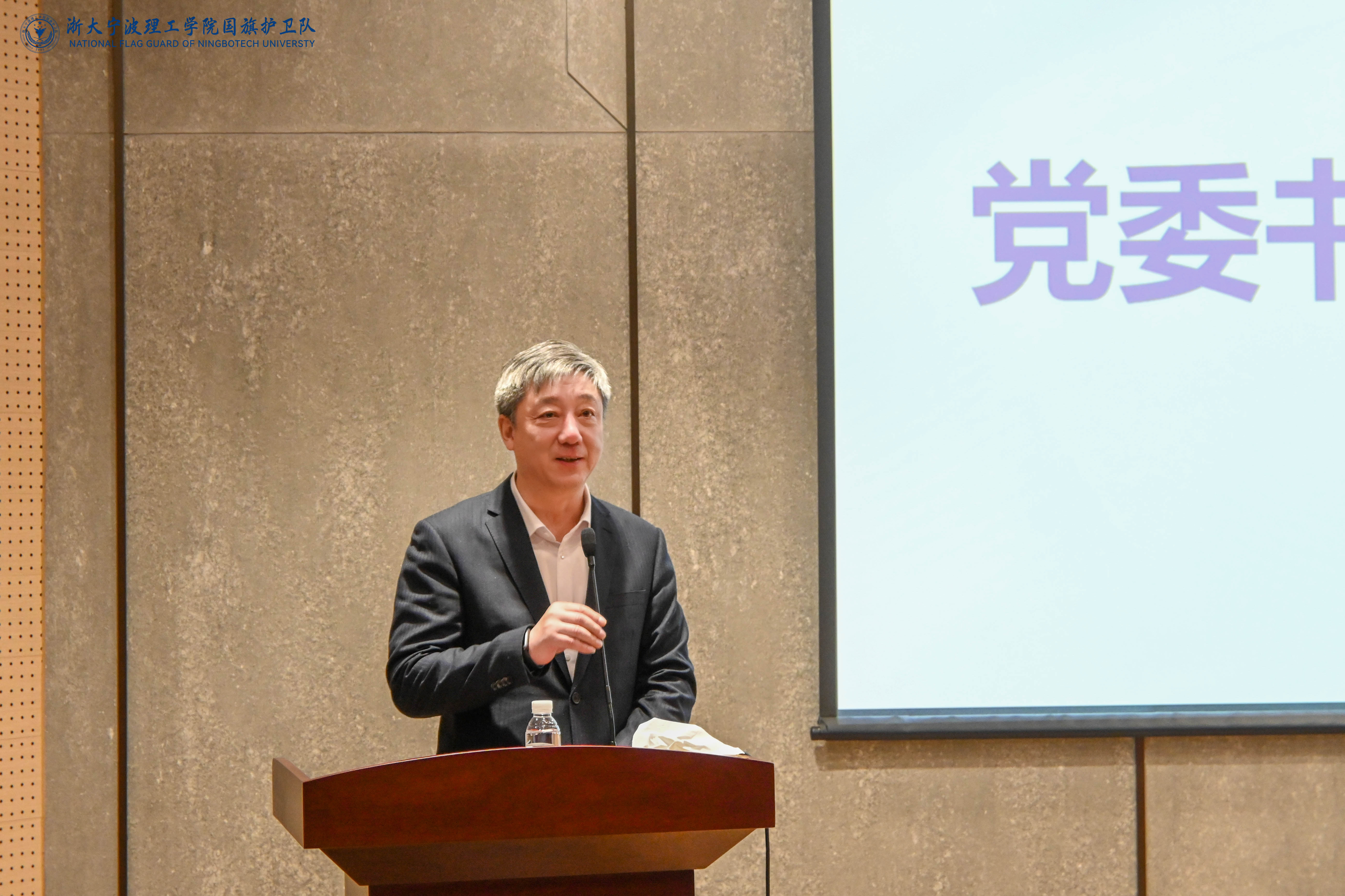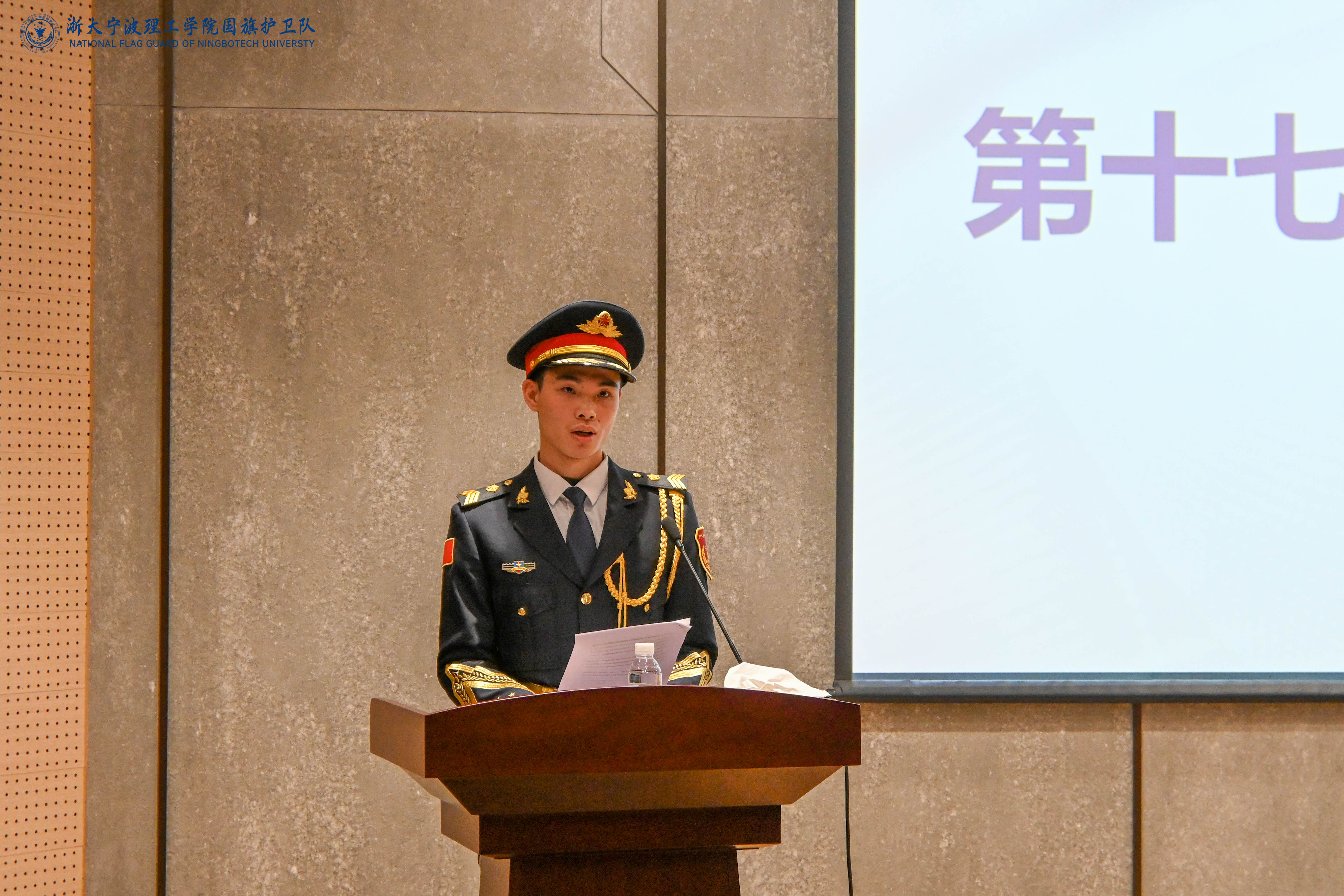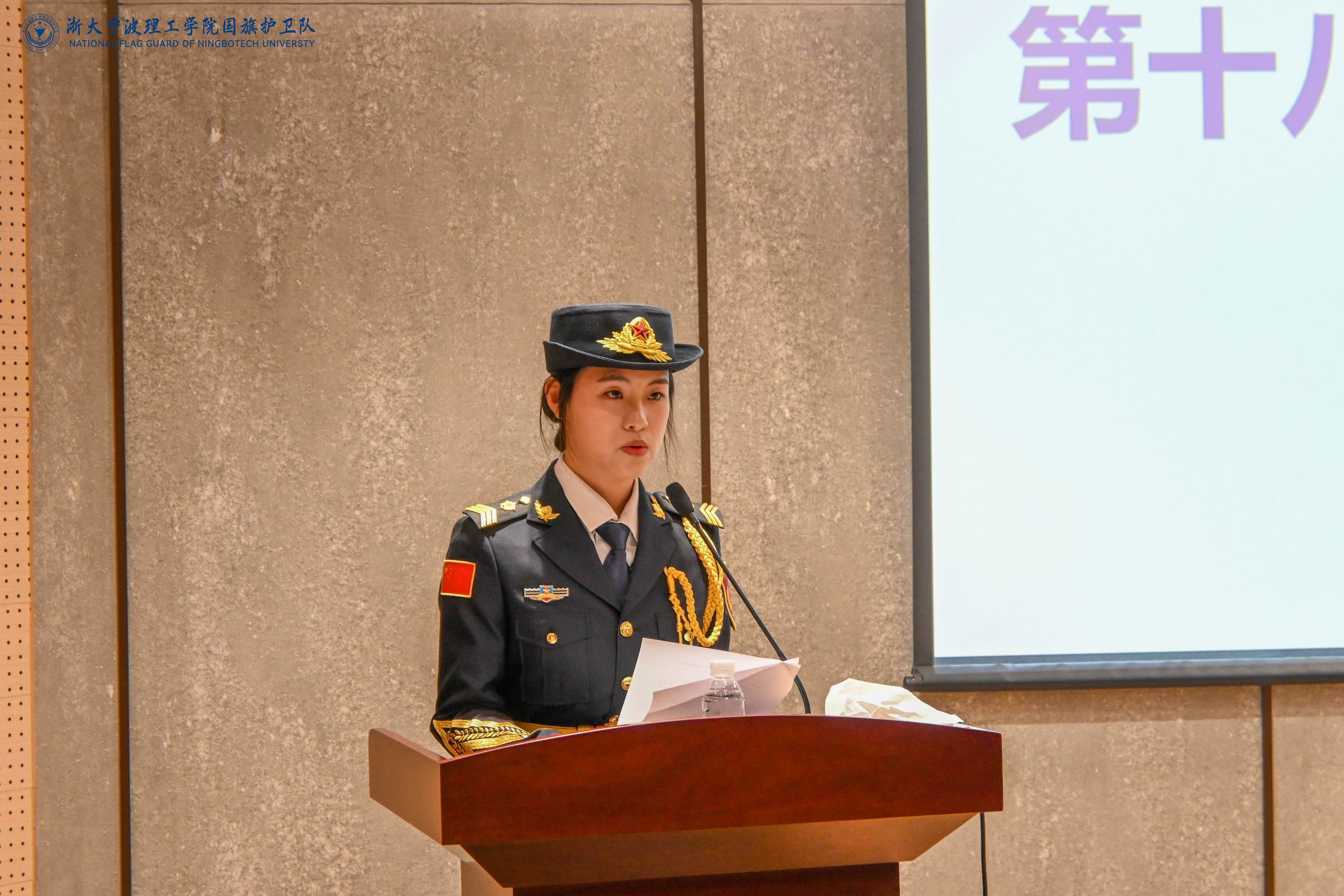 12月13日晚,“使命交替,薪火长燃”浙大宁波理工学院第十八届国旗护卫队换届大会于启新大讲堂举行。学校党委书记胡征宇、宣传部部长李炜、团委书记周春晓、团委业务副主管陈艳、团委专职团干部梅呈龙老师以及兄弟院校浙江药科职业大学国旗队队员代表出席本次大会,我校第十七届和第十八届国旗护卫队全体成员参加本次大会。