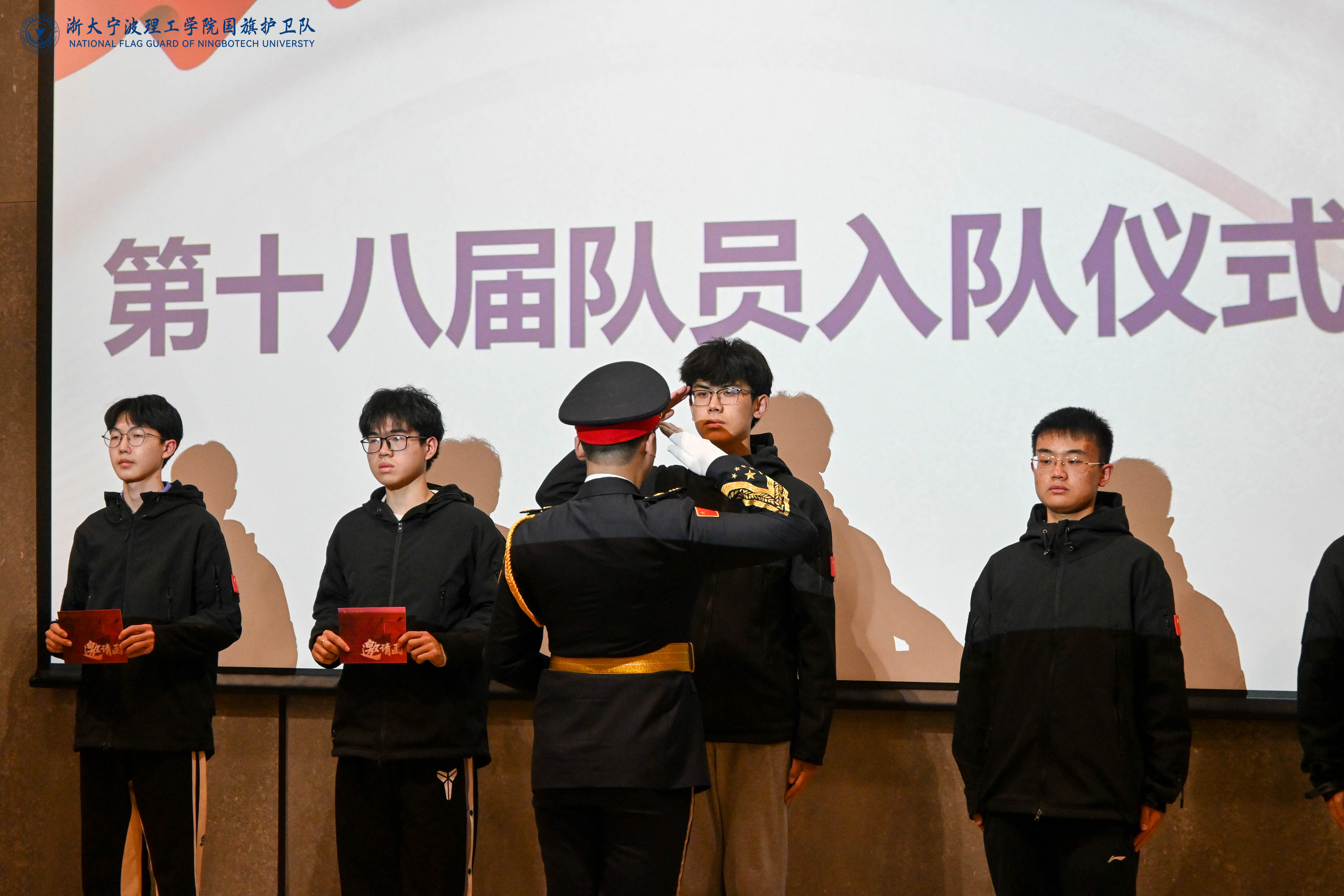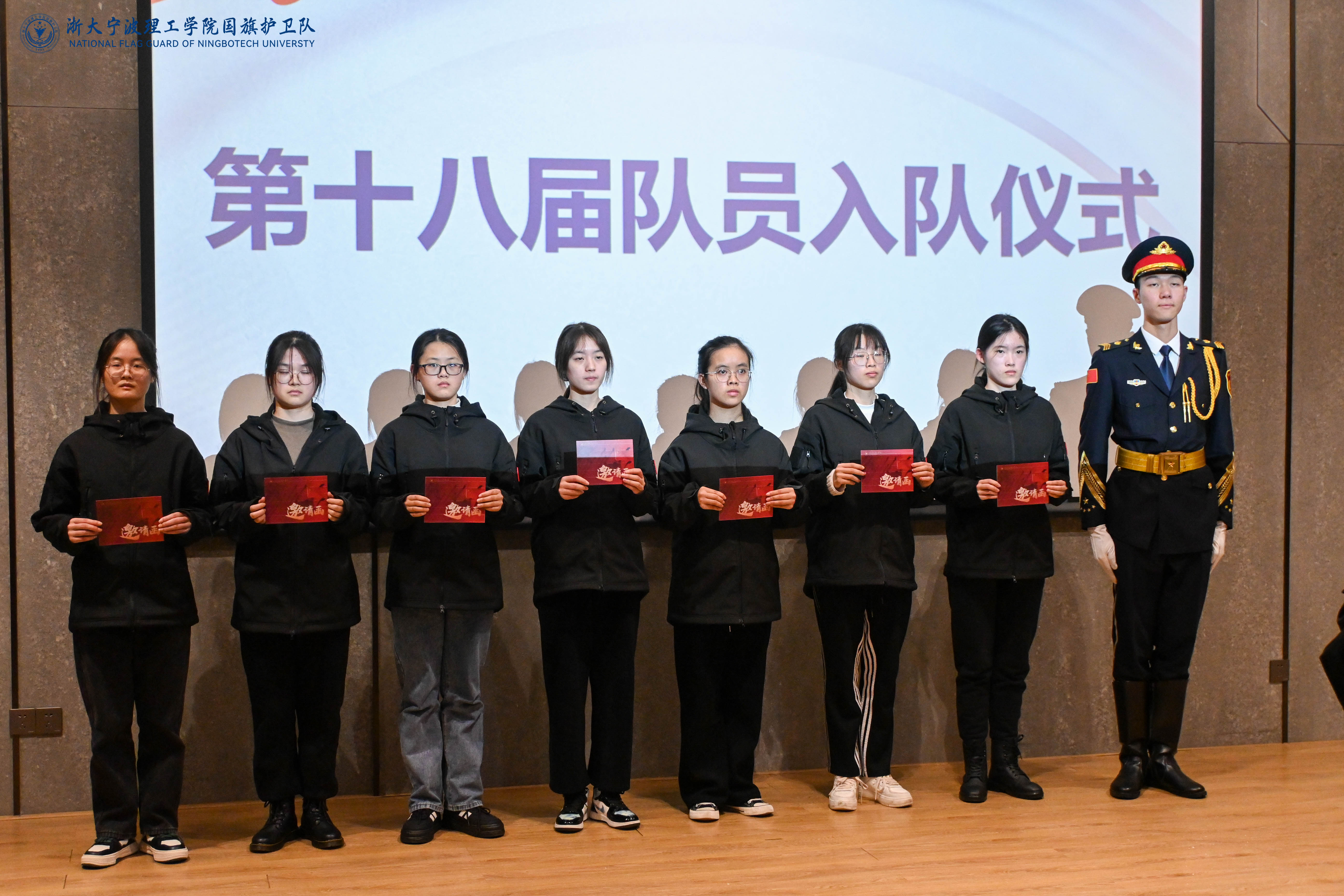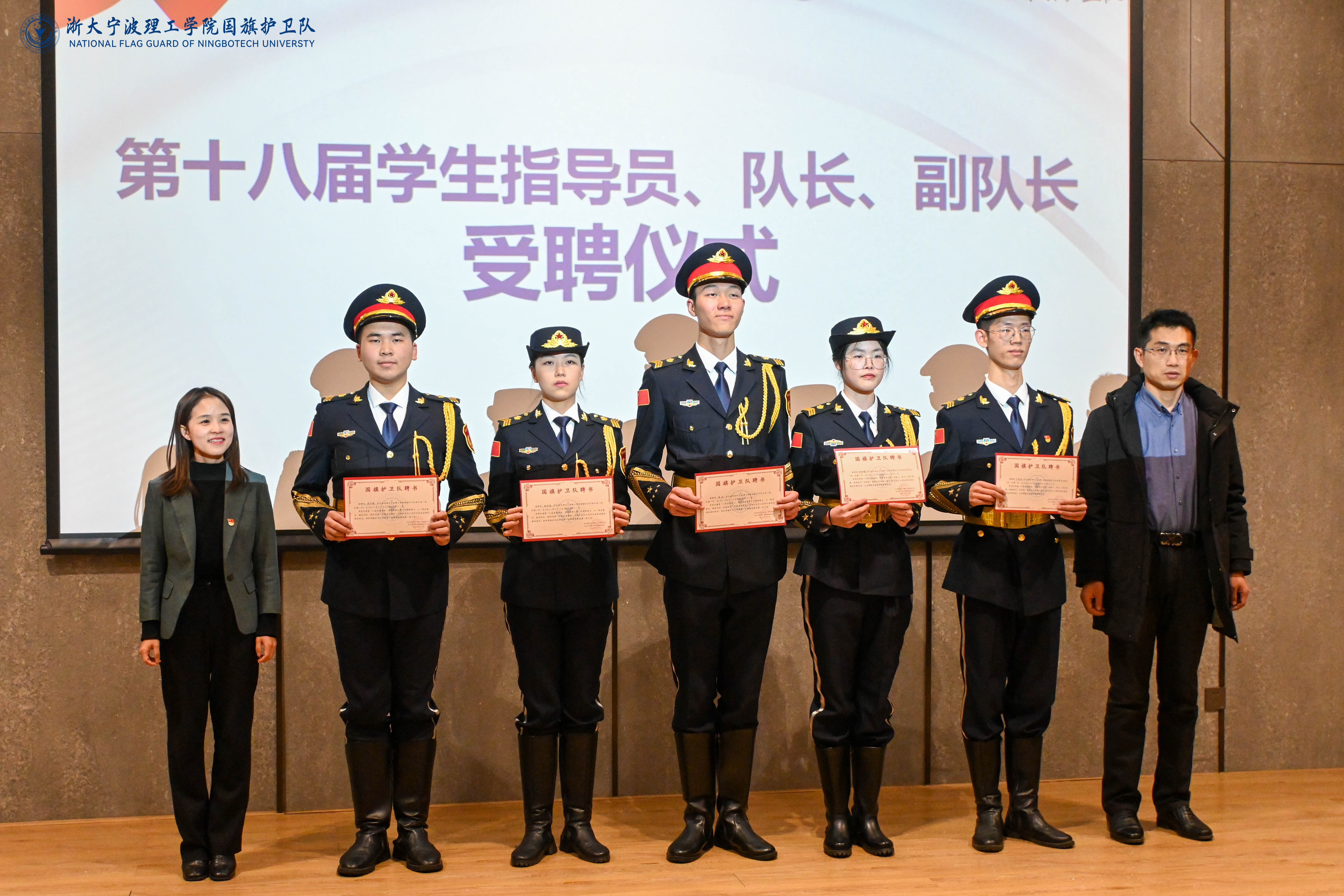 入队仪式上,周春晓、陈艳分别为第十八届国旗队指导员、队长、副队长和执勤队长、国护队员、宣传组长颁发聘书,并对新一届队伍的工作表达鼓励和期待。队长袁乐、副队长陈佳瑶、蒋宇鹏、宣传部部长张佳颖为新队员递交入队邀请函。