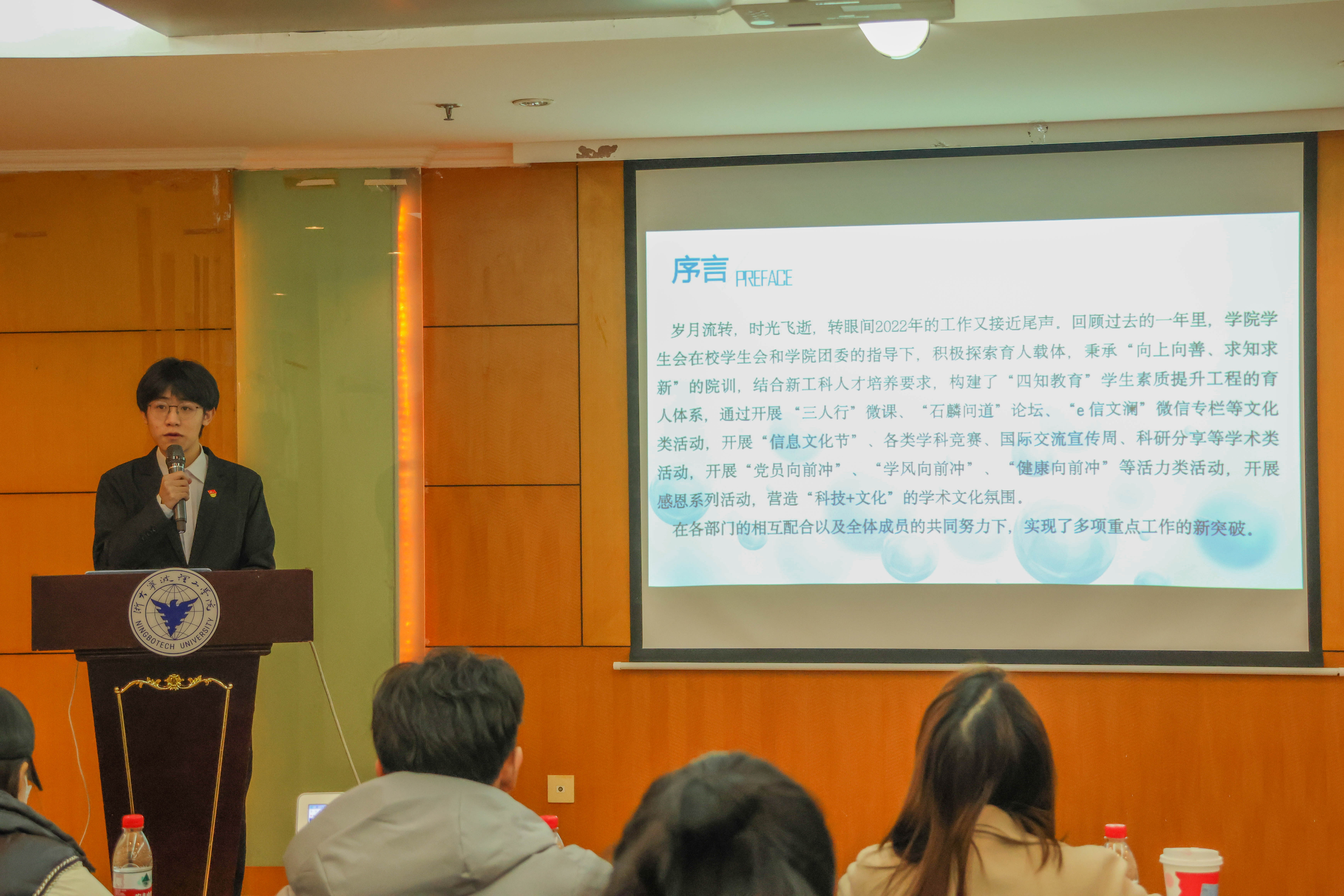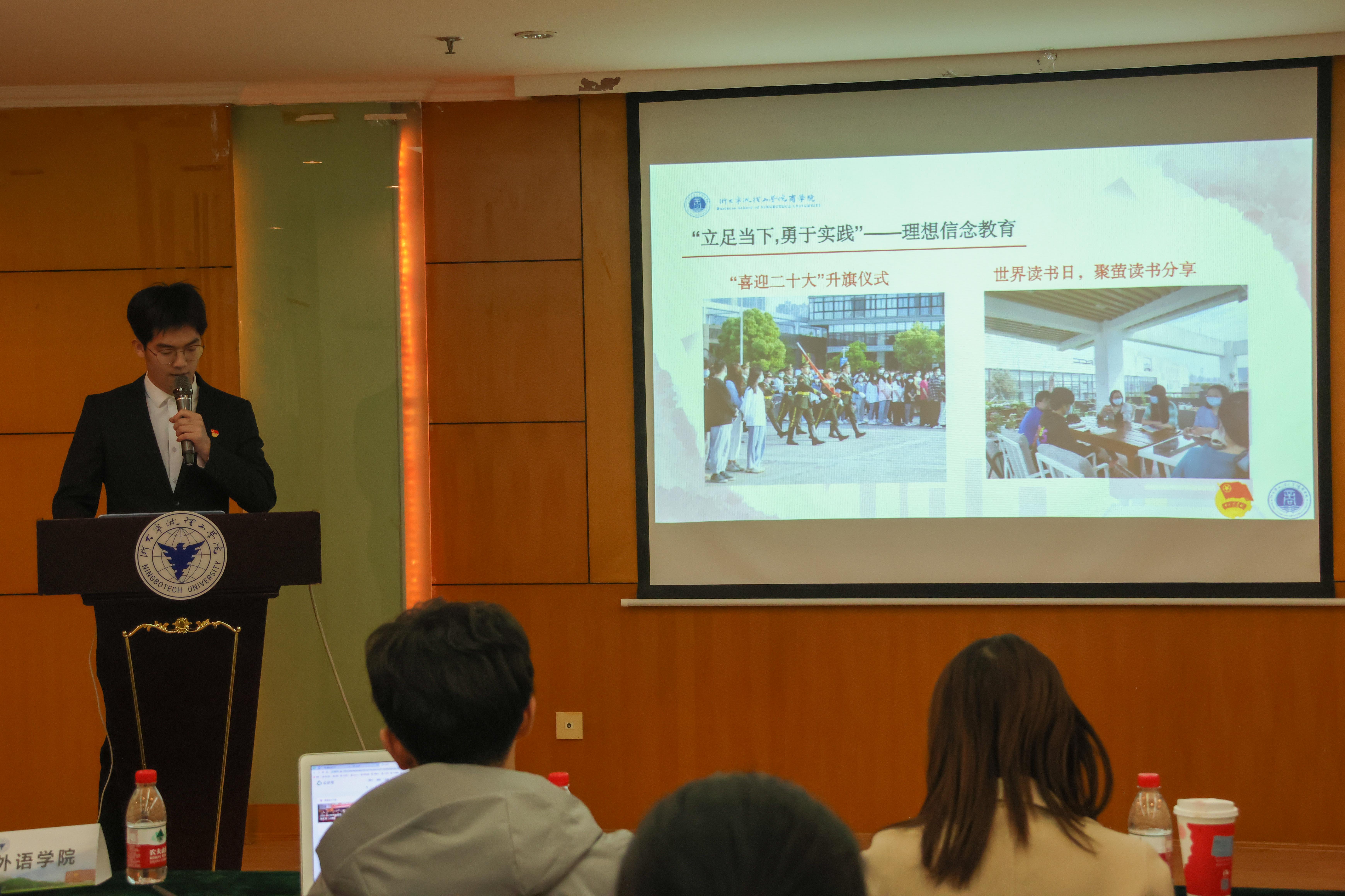 学校团委业务副主管、校学生会秘书长陈艳对各学院学生会扎实的工作和取得的成绩给予了高度肯定,对各学院学生会指导老师和学生会干部们一年的辛勤付出和对学校共青团工作的支持表示由衷感谢。同时,也对各学院学生会工作和学生干部提出了三点新的期望和要求:一是进坚定理想信念,讲好马克思主义中国化的故事。校院两级学生会要牢记党对学联学生会的政治定位,继续主动、深入、扎实学习宣传党的二十大精神和党领导下的青年运动史,不断深化组织化学习方式,在同学们身边讲好中国故事、浙江故事和浙大宁理故事;二是回归服务宗旨,提高学生会大局贡献度。全心全意服务同学是学生会的宗旨,作为学校党委、学院党委和同学联系的桥梁与纽带,学生会要在科学瘦身的基础上,进一步开展“我为同学办实事”实践活动,从同学中来、到同学中去,创新服务形式和服务内容;三是补短板抓落实,夯实学生会改革成效。全国各级学生会改革工作已进入第一轮评估验收期,在改革巩固深化阶段,各级学生会要继续对标党中央、团中央、团省委等要求,强化制度落实、补齐问题短板、推动改革延伸。加强队伍作风建设,提高个人素质能力,提升学生会和学生干部在师生中的存在感、服务感和卓越感。