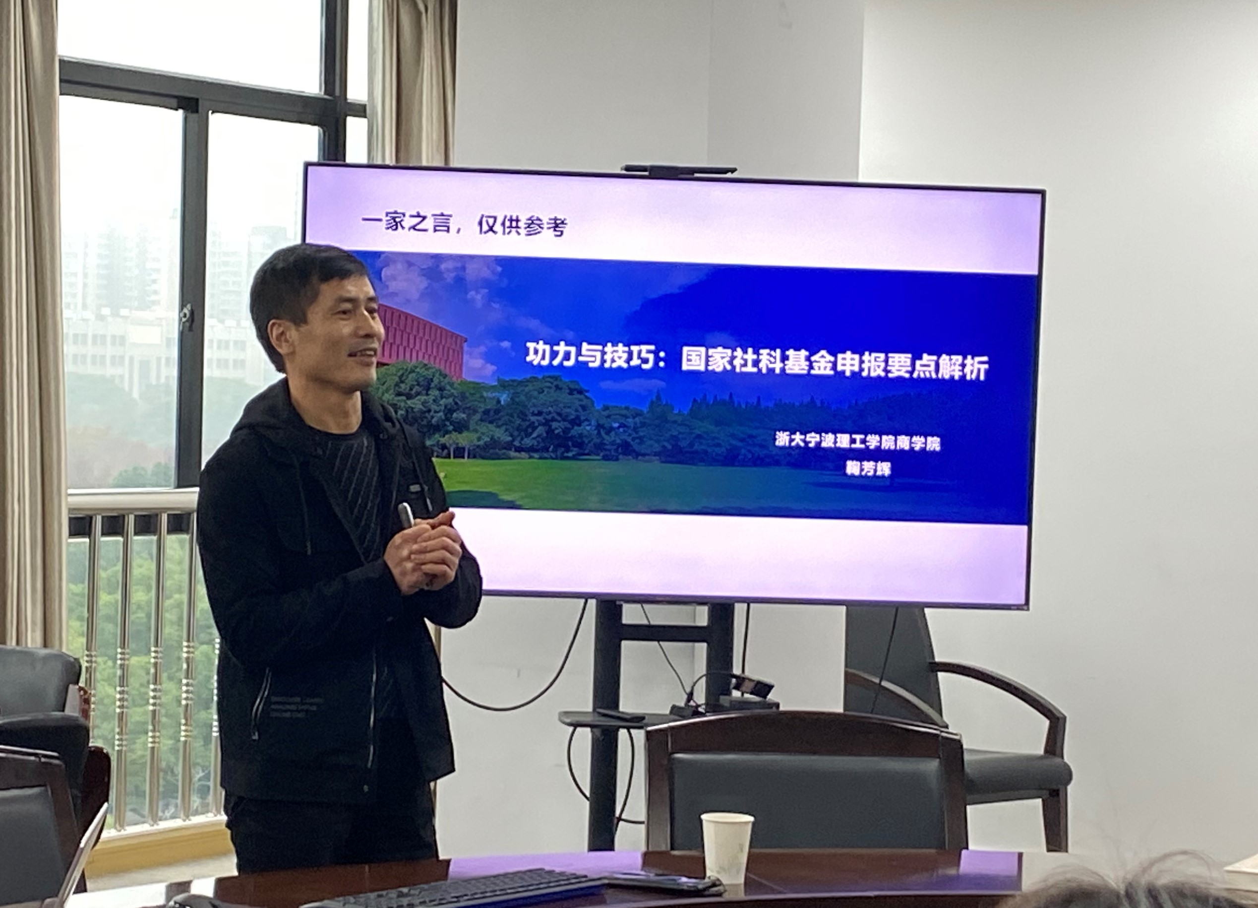 12月9日下午,“科研你我行”第四期国家社科基金申报要点解析主题分享在行政楼504如期举办。商学院副院长,浙江大学管理学博士,英国诺丁汉大学访问学者,浙江大学硕士生导师,浙江省中青年学科带头人,浙江省“151”人才及宁波市领军拔尖人才鞠芳辉教授受邀分享。人文社科学院超三十位预申报国家社科基金项目的教师参加了本次交流。交流会由学校科研处李义杰主持。