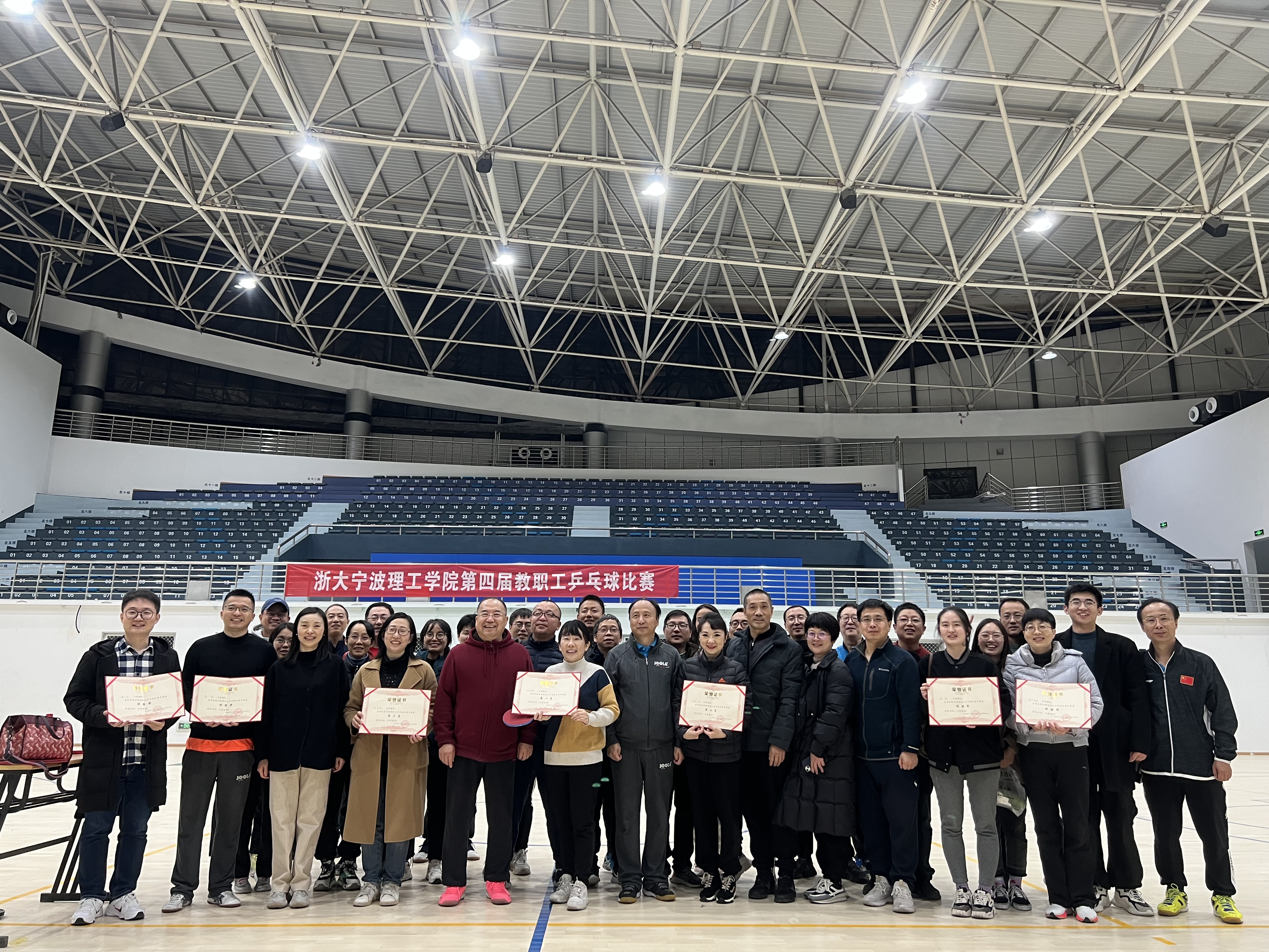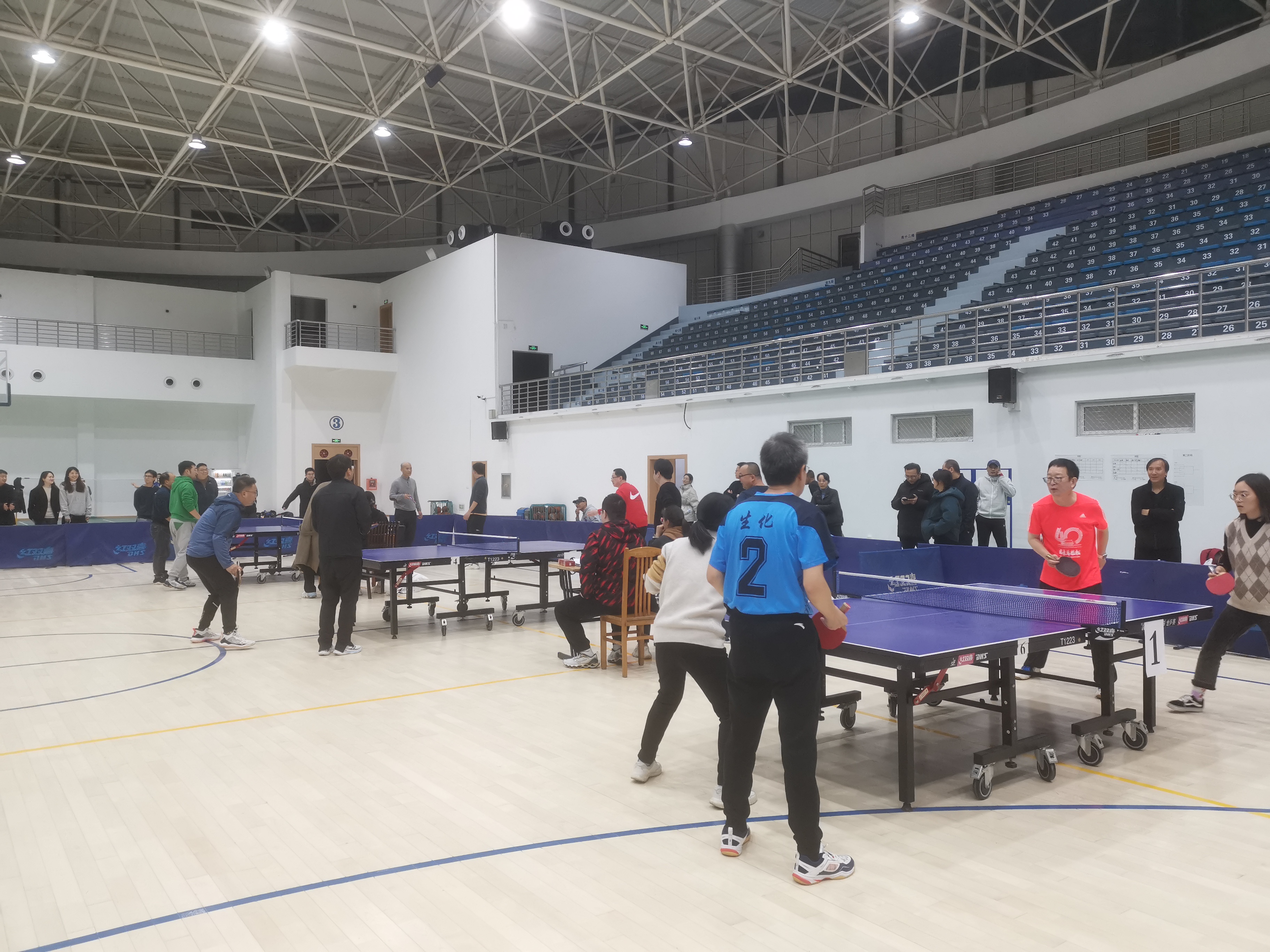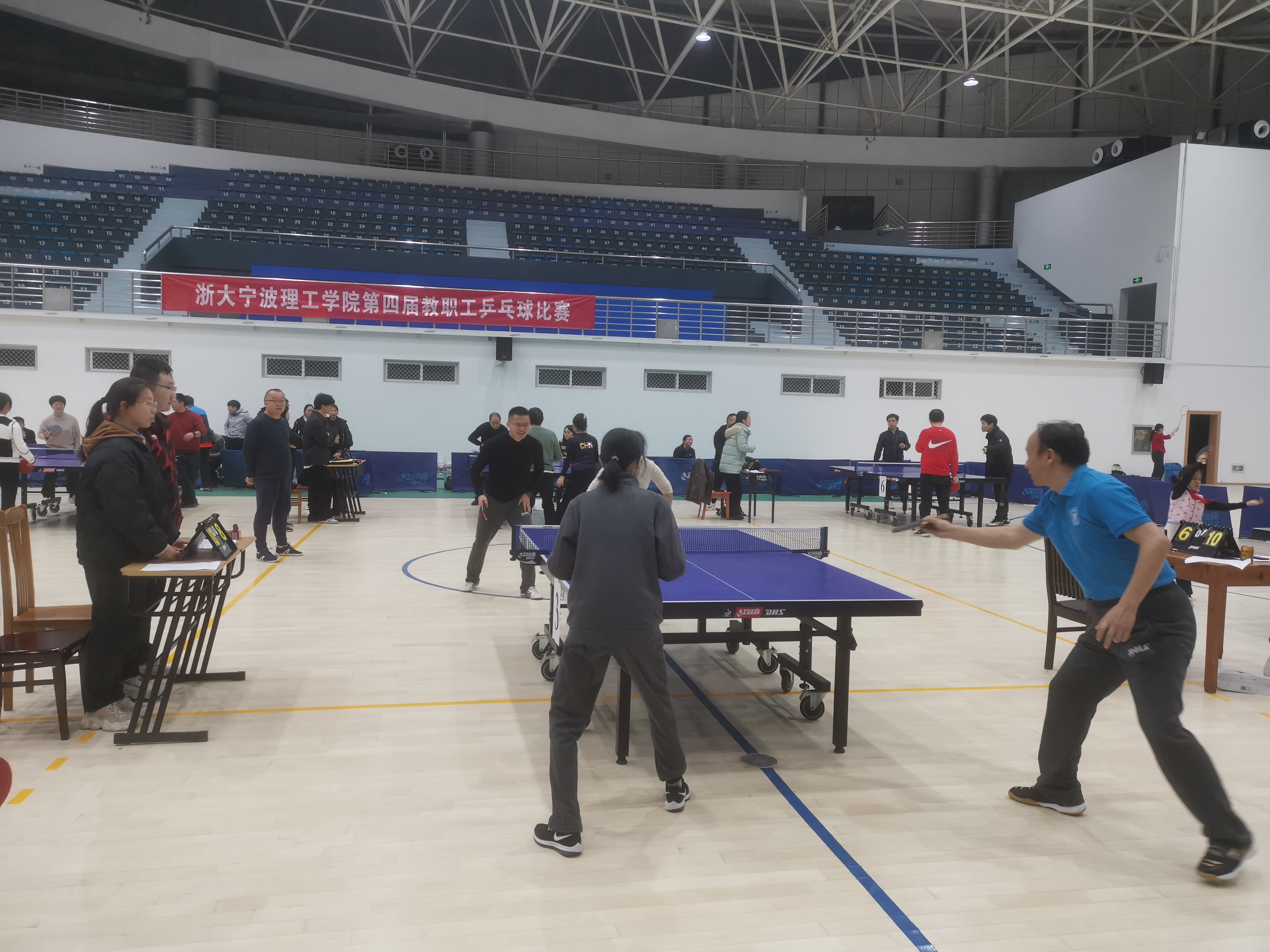 为进一步丰富广大教职工业余文化生活,加强各部门、学院之间沟通交流,增进教职工之间友谊,推动全民健身活动,促进乒乓球竞技水平提高,学校于12月7日晚在校内体育馆成功举办第四届教职工乒乓球比赛。本次比赛由学校工会、体委主办,马院分工会承办。
