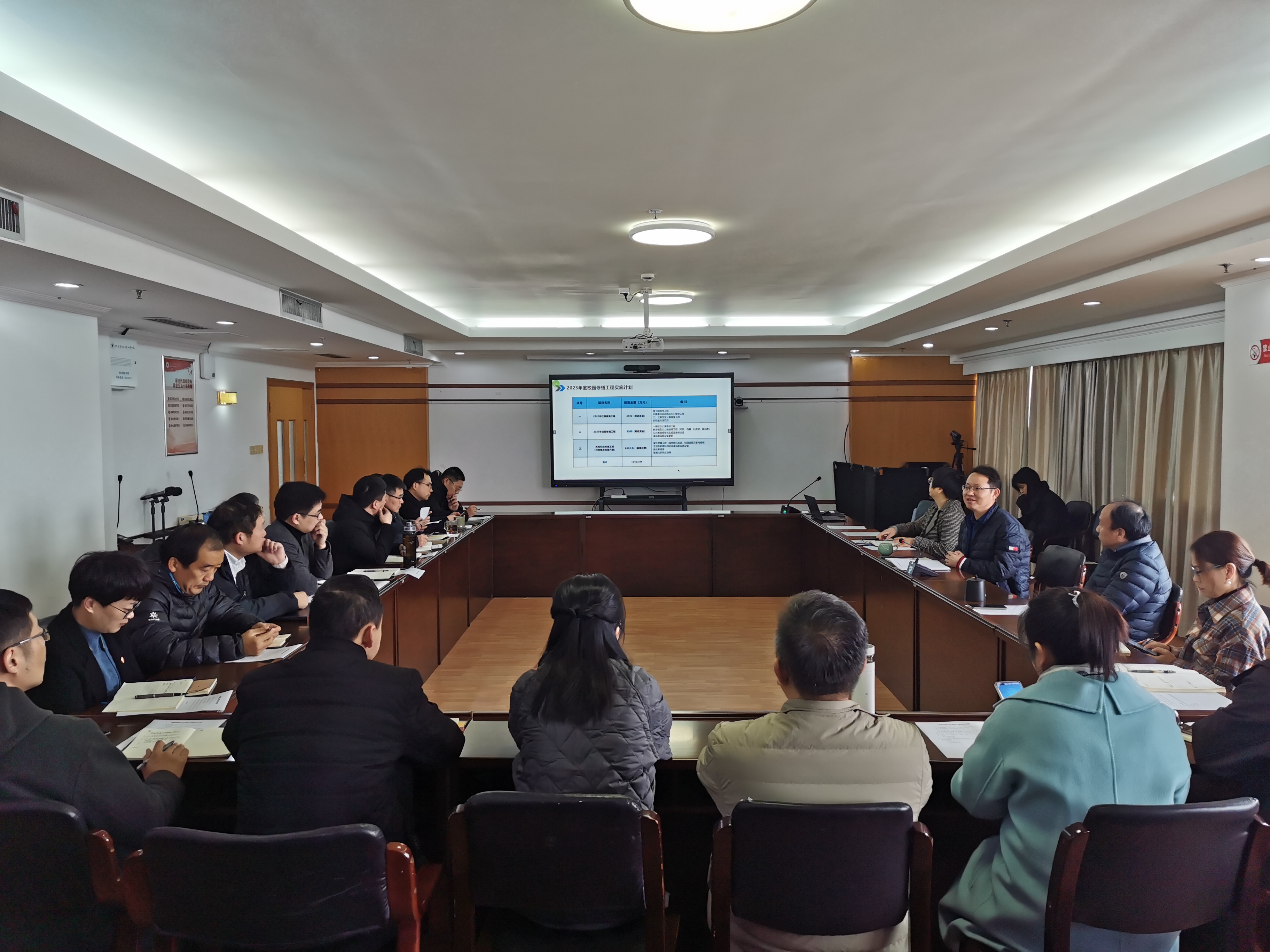 会上,总务处负责人总结2022年修缮项目情况,并汇报了2023年校园修缮实施计划。各学院、各部门就2023年修缮计划展开交流讨论,对校园修缮工作提出了相关要求和建议。