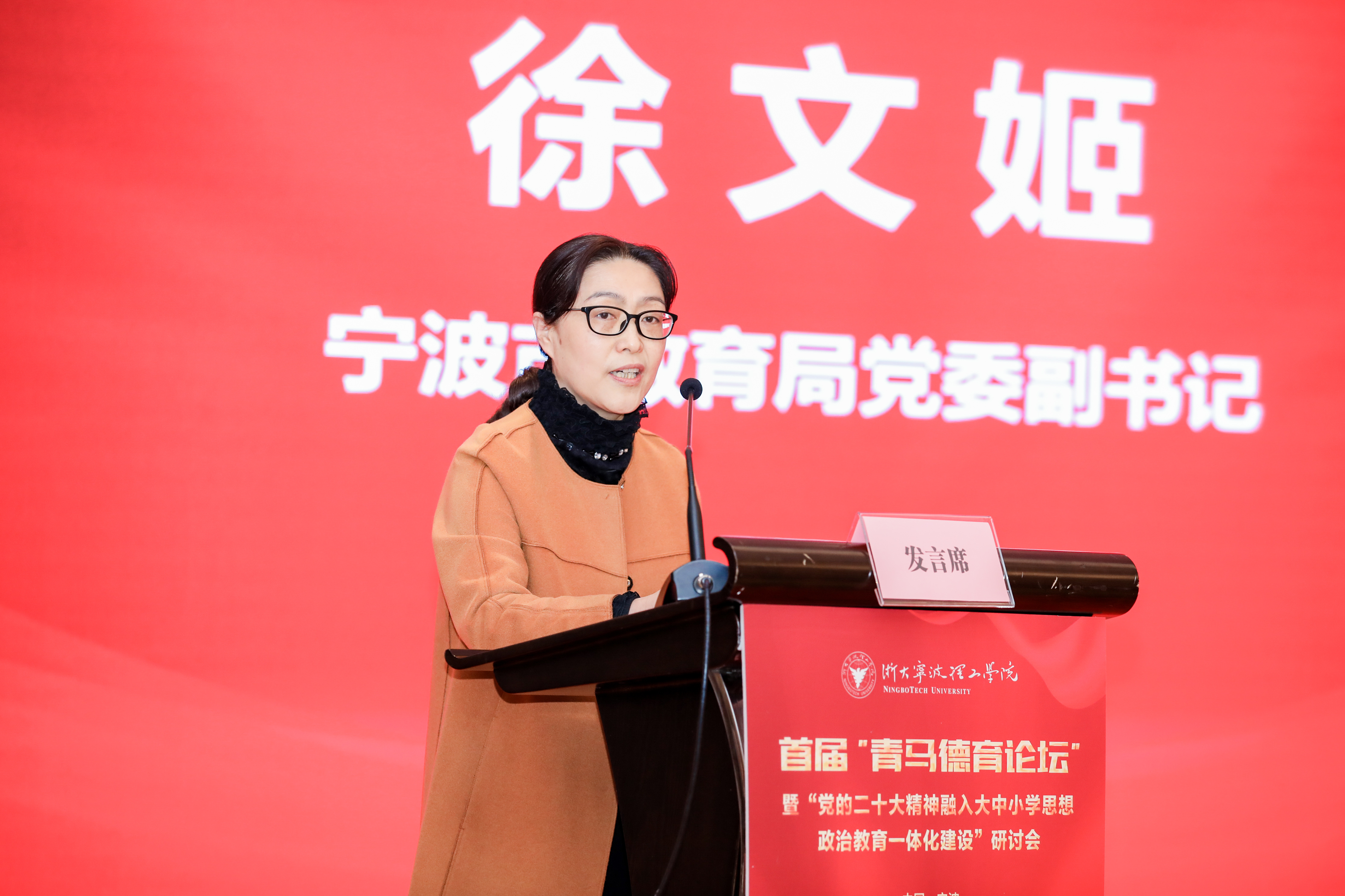 徐文姬介绍了宁波市大中小学思政课一体化建设方面的成果。她指出,浙大宁波理工学院2020年获批宁波市学校德育一体化建设研究基地以来,一直致力于为宁波大中小学落实立德树人根本任务提供智力支持与成果借鉴,构建了多校联动的协同平台机制,成为了全国大中小学思政课一体化建设研究联盟单位成员,取得了具有一定影响力的研究成果。她希望全市教育系统坚持用习近平新时代中国特色社会主义思想铸魂育人,全面深入地将党的二十大精神融入大中小学思想政治教育。