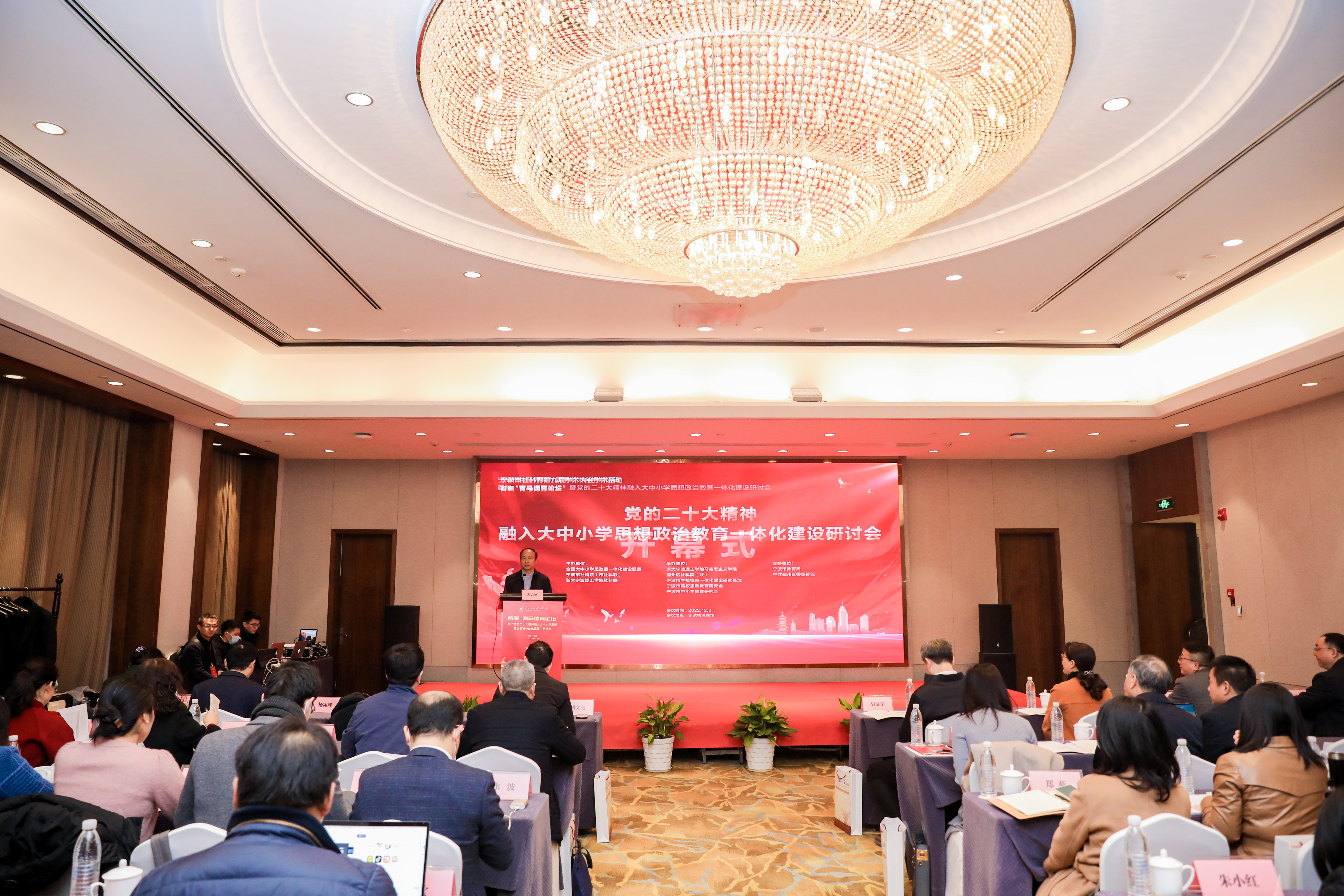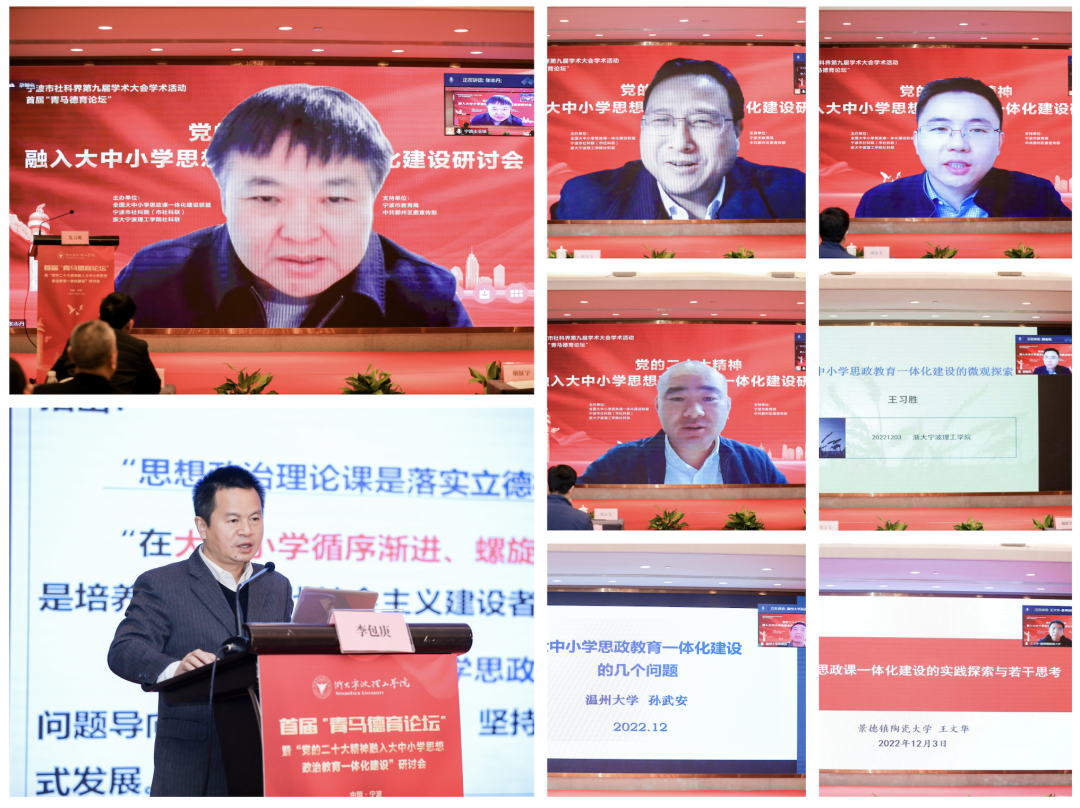 12月3日,首届“青马德育”论坛暨党的二十大精神融入大中小学思政教育一体化建设研讨会在烟雨如画水墨浓香的东钱湖畔成功举办。此次研讨会由浙大宁波理工学院联合全国大中小学思政课一体化建设联盟、宁波市社科院(市社科联)主办,学校马克思主义学院与鄞州区社科院、学校德育一体化建设研究基地、宁波市高校思政教育研究会、宁波市中小学德育研究会共同承办。