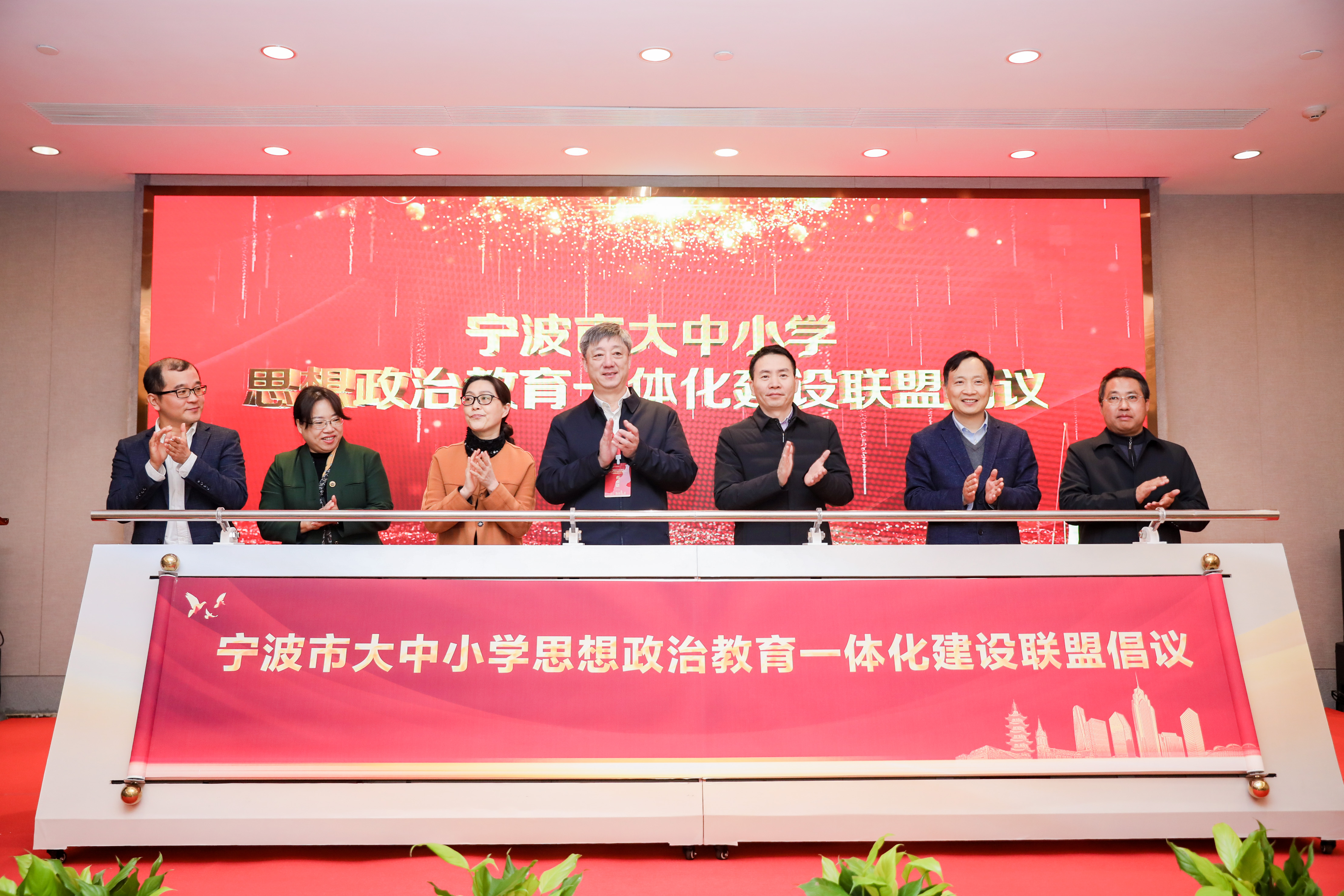 研讨会取得重要成果,学校马克思主义学院牵头,宁波大学、宁波工程学院、浙江万里学院等11所在甬高校马克思主义学院,以及宁波中学、姜山中学、宁波市职教中心学校等6所中小学校联合发起宁波市大中小学思政教育一体会建设联盟的倡议。倡议希望联盟起到团结和联系全市大中小学的平台作用,在完善思想政治工作体系,推进大中小学思政教育一体化建设中发挥协同和促进作用,进一步彰显宁波大中小学思政教育的成效和经验,为推动大中小学思政教育一体化建设打造宁波样本、提供宁波经验。学校马克思主义学院院长费英勤宣读倡议书,马克思主义学院党总支书记、宁波学校德育一体化建设研究基地首席专家伍醒教授做主题发言。