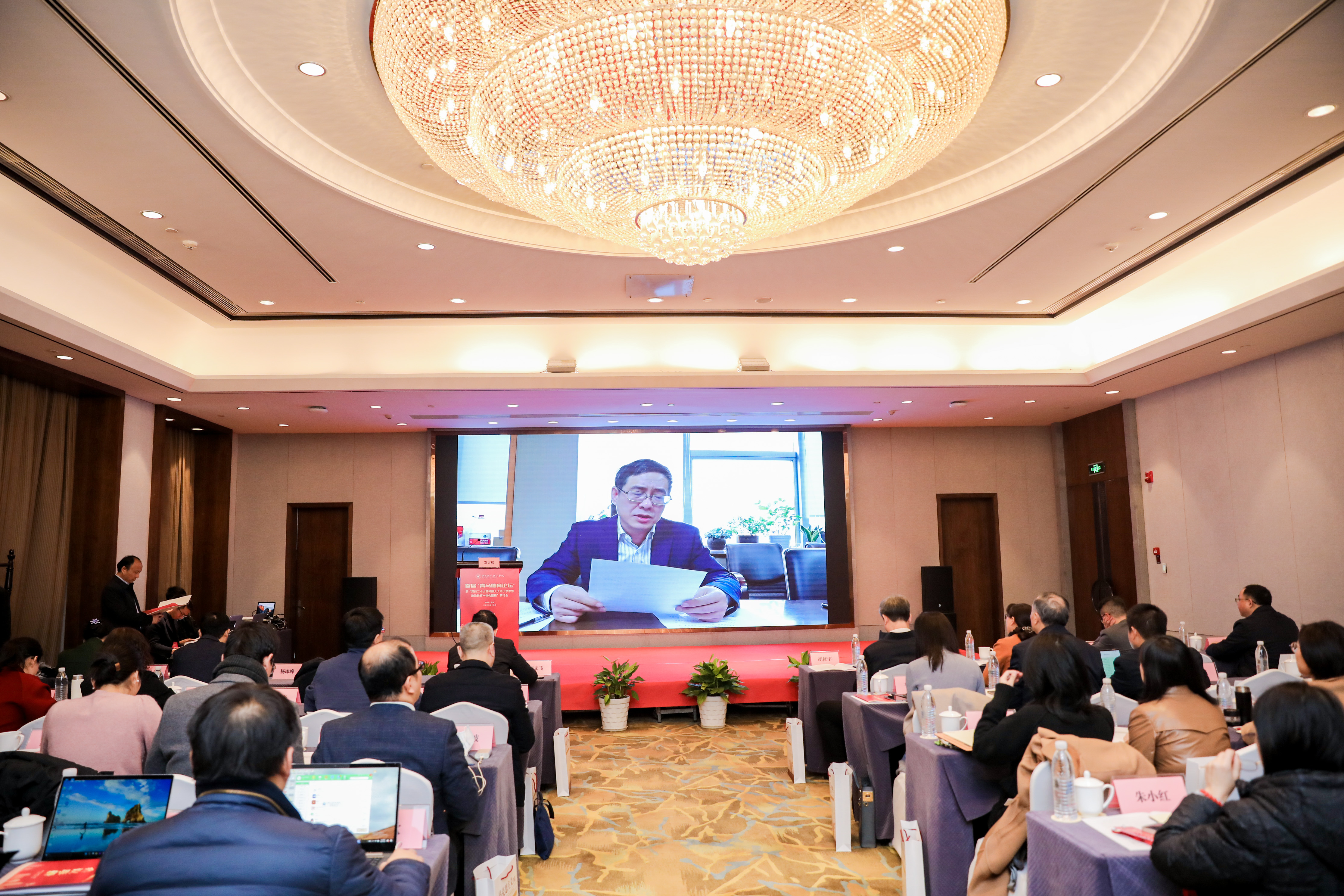 学校党委书记胡征宇到会致辞。浙江省教育厅宣教统战处处长陈雷、市委宣传部副部长胡文飞、市教育局党委副书记徐文姬在开幕会上讲话。学校党委副书记冯建波主持开幕会。市社科联、鄞州区委宣传部、鄞州区社科联相关负责人,以及来自全国的大中小学思想政治教育一体化研究领域的专家学者,在甬高校马克思主义学院和部分中小学负责人参加会议。一天的研讨会以线上线下同步、专家主题报告与青年学者论坛结合的方式进行,专家学者、青年骨干、中小学校长等三百余人参加。
