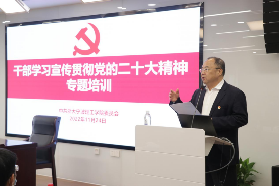 11月24日下午,学校“领导干部学习宣传贯彻党的二十大精神专题培训班”在科创中心324报告厅开班。学校党委书记胡征宇宣讲党的二十大精神并作开班动员。校长、党委副书记杨德仁作首场专题辅导报告。党委副书记李凤旺主持开班式。