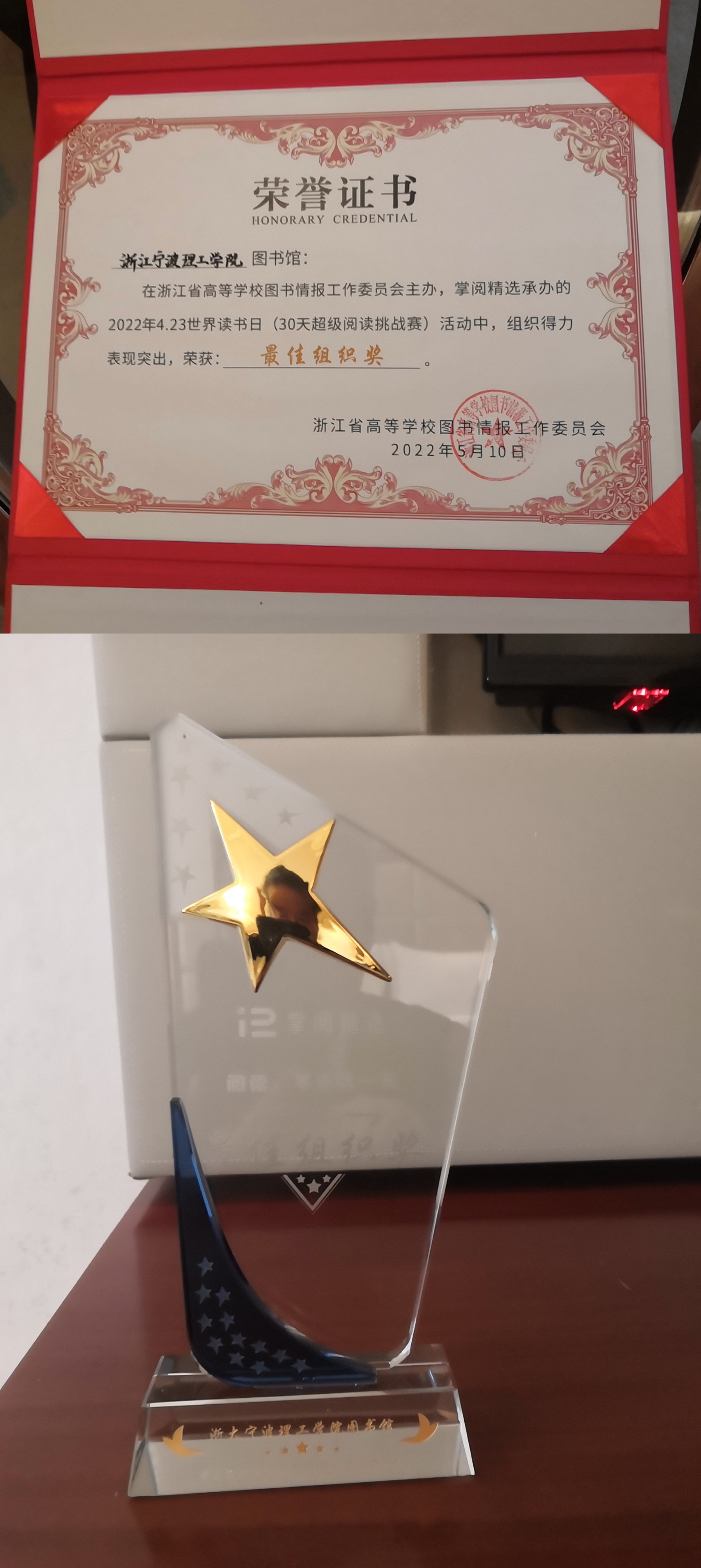 我校图书馆在2022年阅读挑战赛中喜获最佳组织奖。本次大赛校内由图书馆联合学工部、团委共同组织,历时30天,我校共有七百余人报名参与,其中33人在省内获奖,87人获得校级奖励。