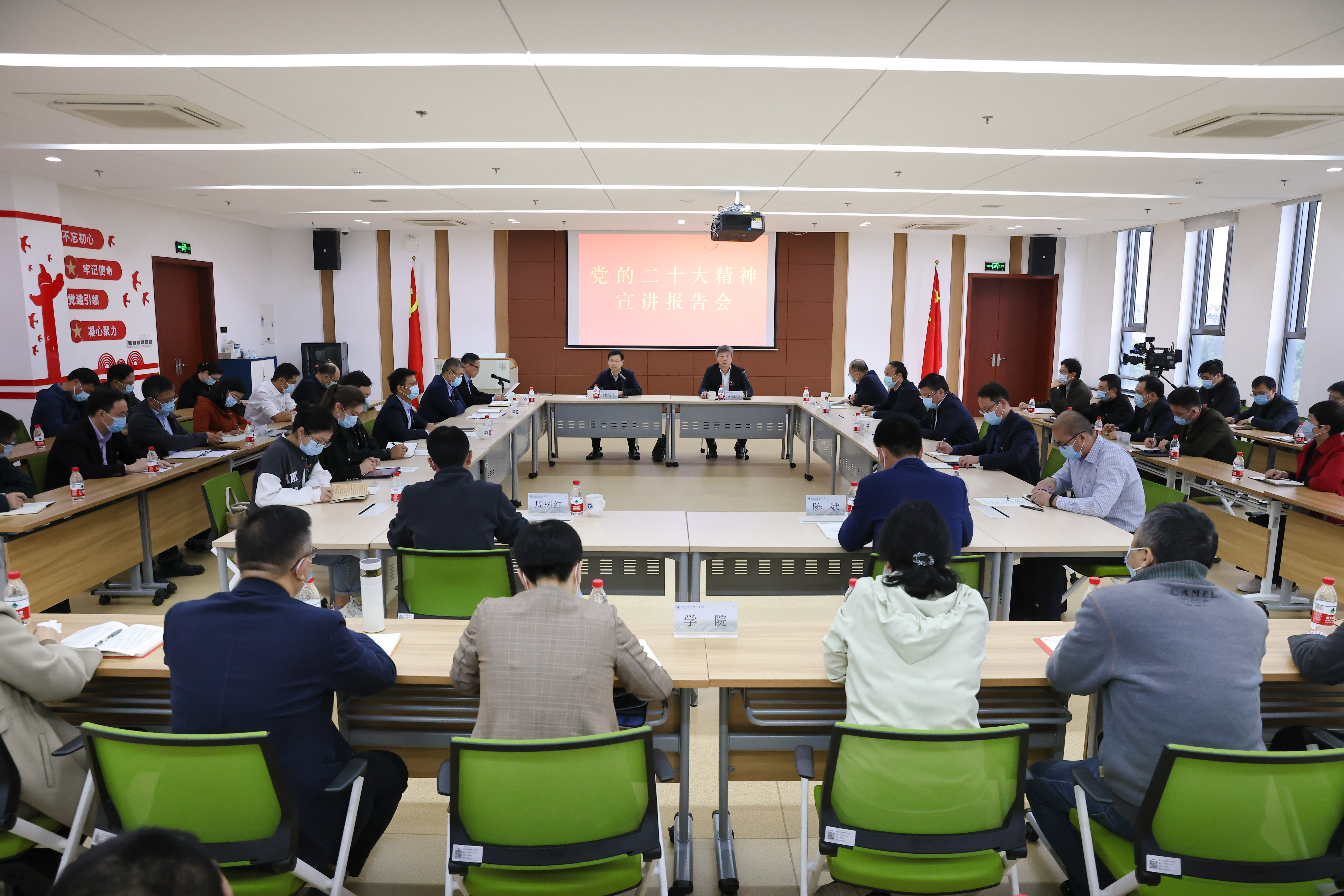 11月14日上午,宁波市委副书记钟关华专程来到浙大宁波理工学院,宣讲党的二十大精神。浙大宁波理工学院党委书记胡征宇主持宣讲会。