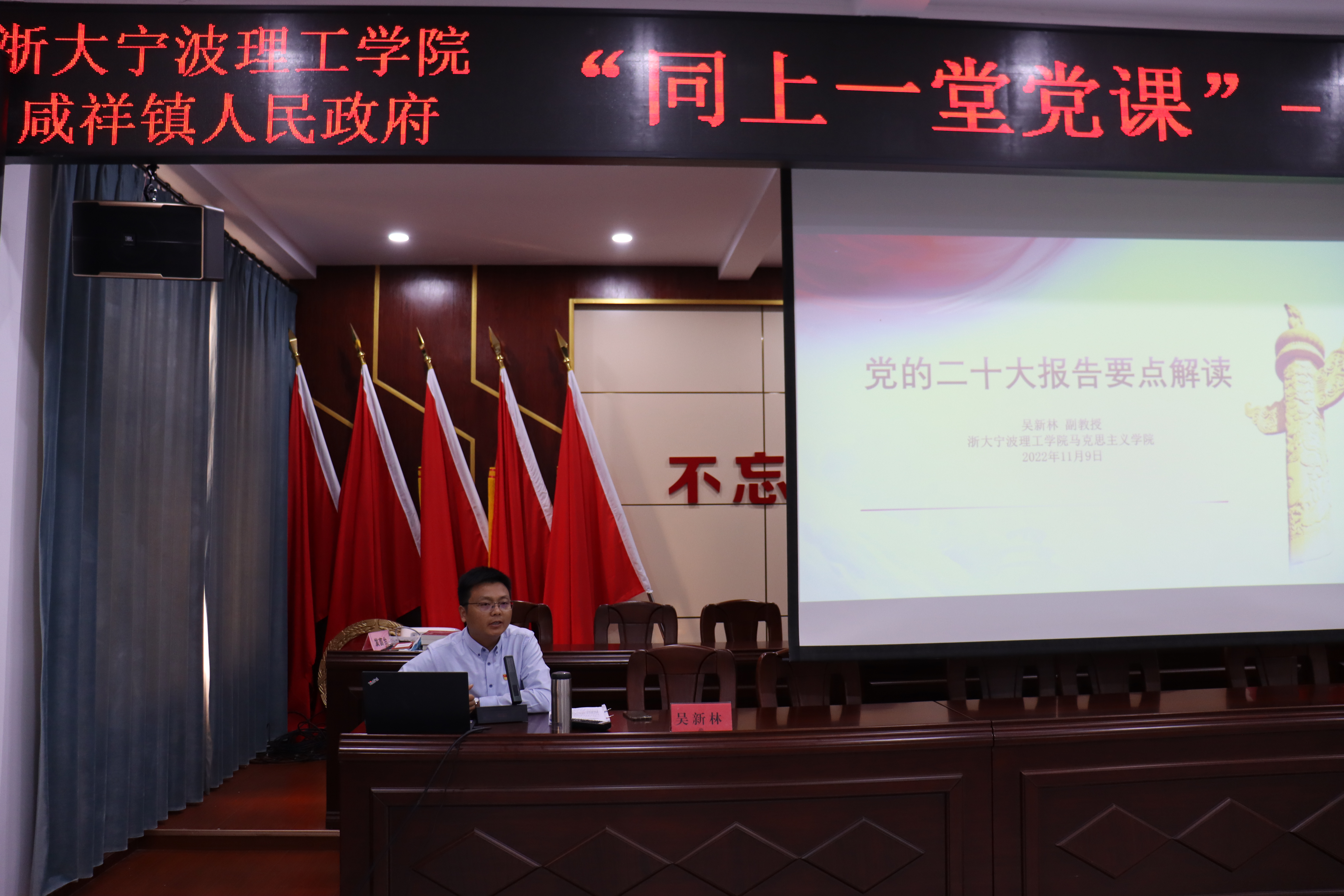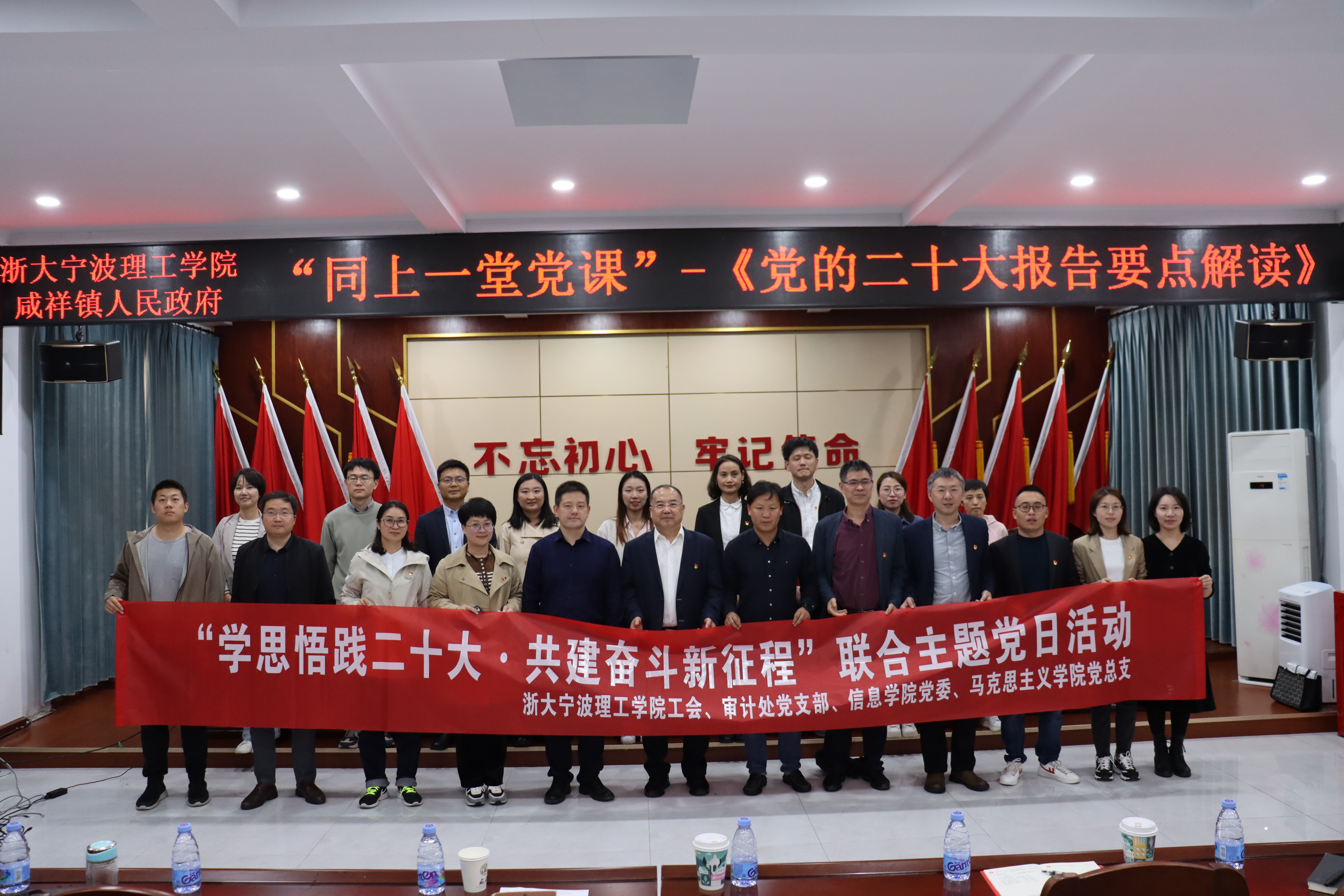 为全面学习宣传贯彻党的二十大精神,进一步推动校地共建优势互补、资源共享,促进党建和业务相融共进,11月9日下午,浙大宁波理工学院工会、审计党支部、信息学院党委、马克思主义学院党总支走进咸祥开展联合主题党日活动,学校党委副书记李凤旺、审计处处长陈敏东、信息学院党委副书记郑毅、马利文、马克思主义学院党总支副书记张维雅等参加活动。