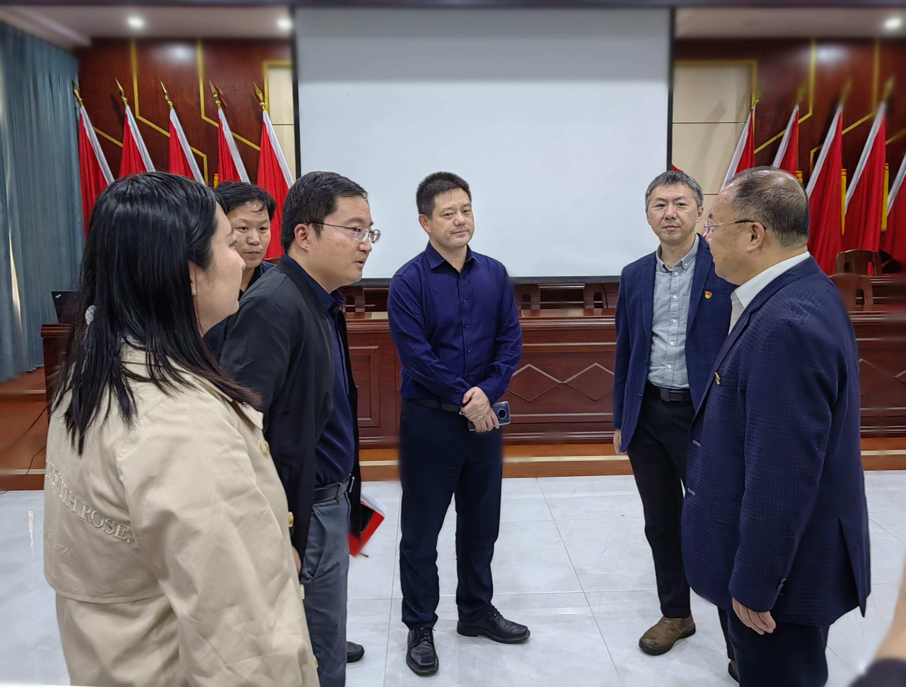 会上,信息学院信号智能检测与生命行为感知研究所所长蔡卫明博士还以党的二十大报告“瞰见”乡村振兴为主题,为大家解读了《数字渔场建设赋能乡村振兴》研究课题,并就咸祥镇数字渔场建设情况与大家深入交流,蔡博士也畅谈了未来规划,希望深化双方合作,通过进一步推进智慧化渔业建设力度,联合申报校地合作横向项目,共建渔业数字化示范养殖基地多举措助力咸祥渔业高质发展,打造校地合作乡村振兴样板,为数字化赋能咸祥万亩养殖塘发展给出了方案。校地交流环节,李凤旺还详细了解了学校选派到咸祥的挂职干部信息学院马新莉老师为推进数字渔场建设所开展的工作情况。