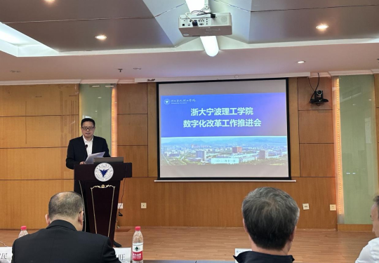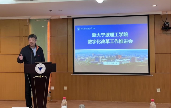 2022年11月3日下午,浙大宁波理工学院召开2022年第四次数字化改革工作推进会,校党委书记胡征宇出席并讲话,副校长鲁东明主持。全体在校校领导,各部门、各单位主要负责人,各学院负责数字化改革的主要领导,各单位数字化改革专员及数改办和信息技术中心相关人员参加会议。