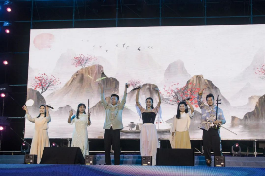 “家国·心系天下”篇章,歌伴舞《星辰大海》表达了对梦想或心中理想和目标的追求,《戎马天下》《武动青春》则有力地展现了中华优秀传统文化的包罗万象、自强不息,歌曲《向往》将晚会推向了高潮,新时代的浙大宁理青年,与祖国同心,与梦想同行,肩负强国使命,争做时代栋梁。