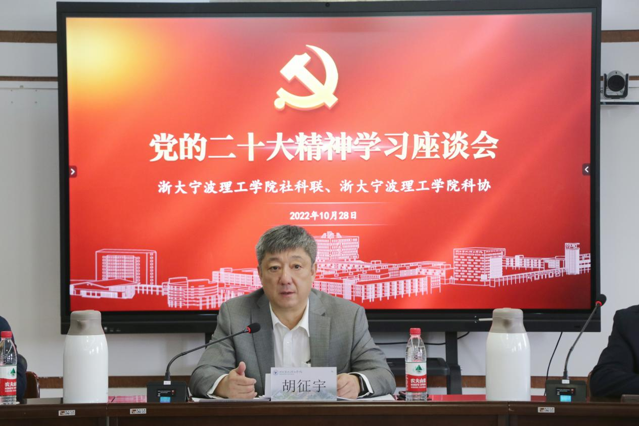 10月28日,学校社科联、科协举行学习贯彻党的二十大精神座谈会,党委书记胡征宇领学大会精神,党委副书记、校社科联主席冯建波,副校长、校科协主席鲁东明出席座谈会。校社科联、科协成员参加座谈,作了交流发言。