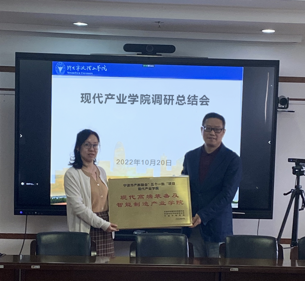 商学院、机能学院、信息学院、数据学院、生化学院5个现代产业学院建设单位分别结合参加校院两级组织的产业学院暑期调研和自身建设阐述了应用型本科高校建设现代产业学院的发展路径与建设思路。鲁东明为现代高端装备及制造产业学院授牌。