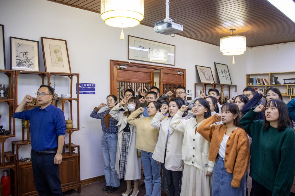 座谈会后,胡征宇向与会人员赠送书籍。全体辅导员举行了学工人宣誓仪式。