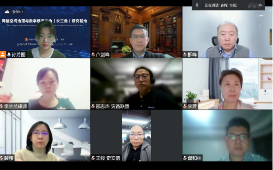 10月18日晚,网络空间治理与数字经济法治(长三角)研究基地联合中国通信学会网络与数据法治决策咨询专家团队全体成员齐聚云端,在研究基地主任、决策咨询专家团队首席专家王春晖教授带领下认真学习和领会党的二十大报告,并就决策咨询专家团队的年度研究任务和研究基地的科研工作作了专题部署,研究基地执行主任张文祥教授主持会议。