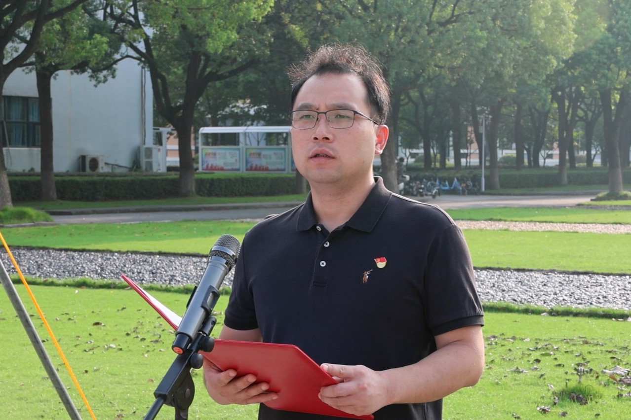 退伍大学生代表李昱铮在国旗下讲授微团课。他结合服役、上海抗疫、新学期紧急核酸志愿者等方面经历,号召广大青年学子不忘初心、努力奋进、顽强拼搏、勤奋学习,用实际行动展现“强国有我”的决心,让祖国放心、让父母放心,为自己的青春交出满意答卷。