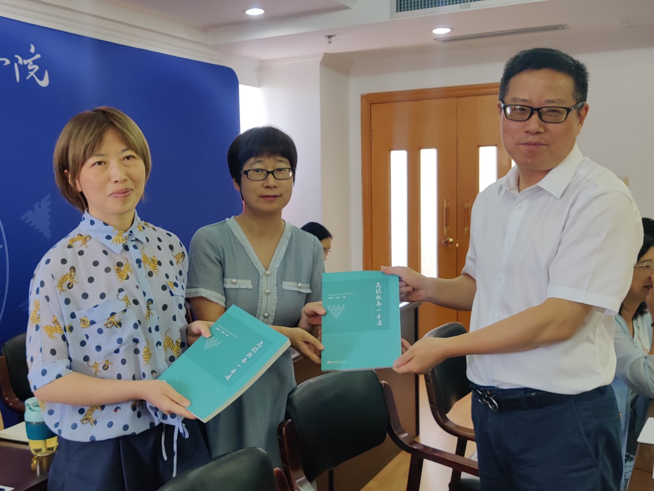 沈昊宇介绍了近期教学管理队伍人员和教务处相关岗位工作变化情况,勉励全体人员要坚持学习,不断加深对教务工作的理解和认识。副校长鲁东明为教学管理团队配发学习书目《高校教务一本通》,新加入教学管理队伍的章瑶和李宁慧两位老师作为代表,参加授书仪式。