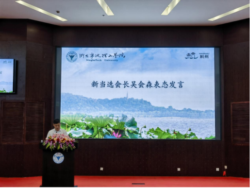 杭州校友会会长吴会森作表态发言。他表示要扛起杭州校友会这面旗,整合资源,为杭州校友搭建起良性循环的发展平台。