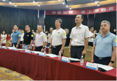 会议伊始,全体校友老师起立,奏唱《校歌》。