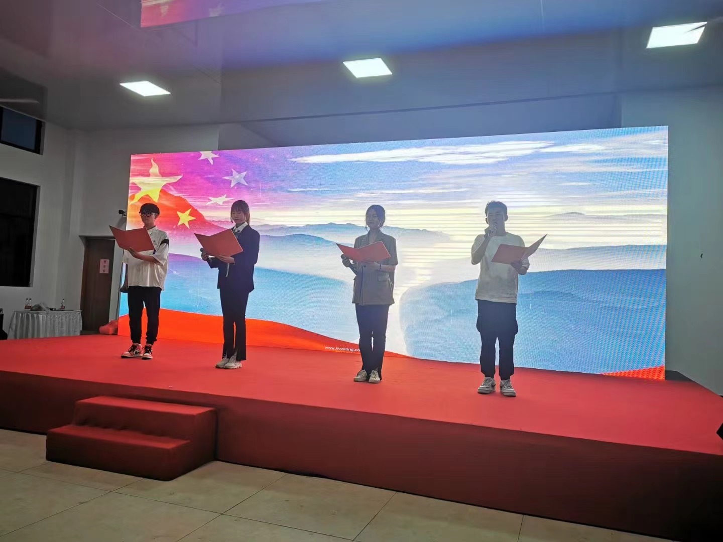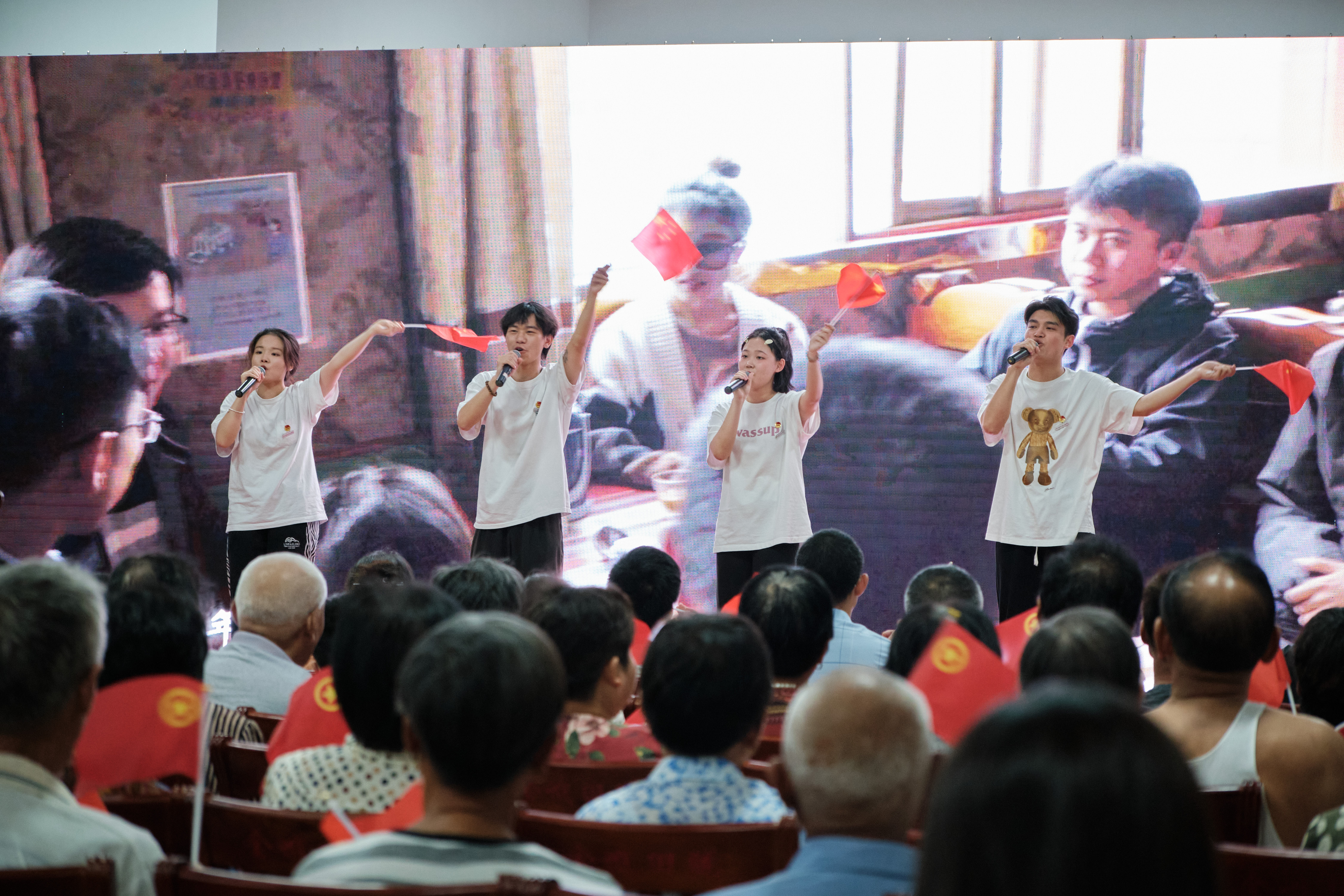 “歌唱我们亲爱的祖国,从今走向繁荣富强”“我和我的祖国,一刻也不能分割。”现场,朱宇浩、张紫怡、潘靖蓥等实践团成员用嘹亮的声音唱响新时代的最美赞歌。《歌唱祖国》《映山红》《我和我的祖国》等一首首歌曲紧紧围绕活动主题,以音乐穿插党史教育,以歌声唱响青年学子爱国爱党的初心使命。
