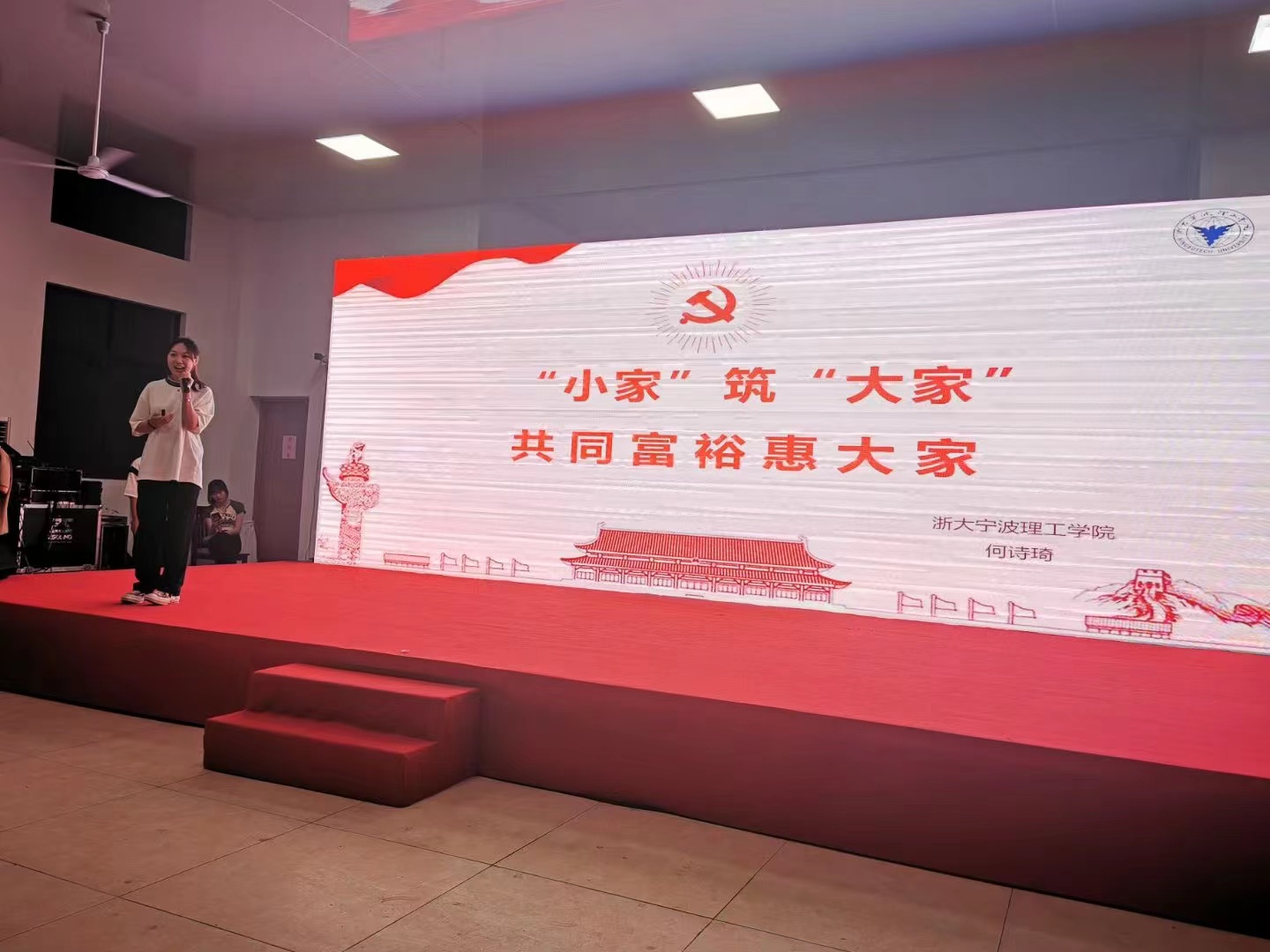 “在我们党创立101周年这样一个特殊的日子里,能站在金峨村这块红色土地上宣讲、歌唱,我们分外激动!”7月1日晚,浙大宁波理工学院“歌声嘹亮永远跟党走,播种太阳奋进新征程”文艺下乡暑期社会实践团走进横溪镇金峨村,联合当地共同开展“青春喜迎党的二十大·同心筑梦新百年”浙江省第十五次党代会精神宣讲暨文艺微党课进礼堂活动,师生们以“原创理论+文艺宣讲”的方式为百姓们送上了精神大餐。