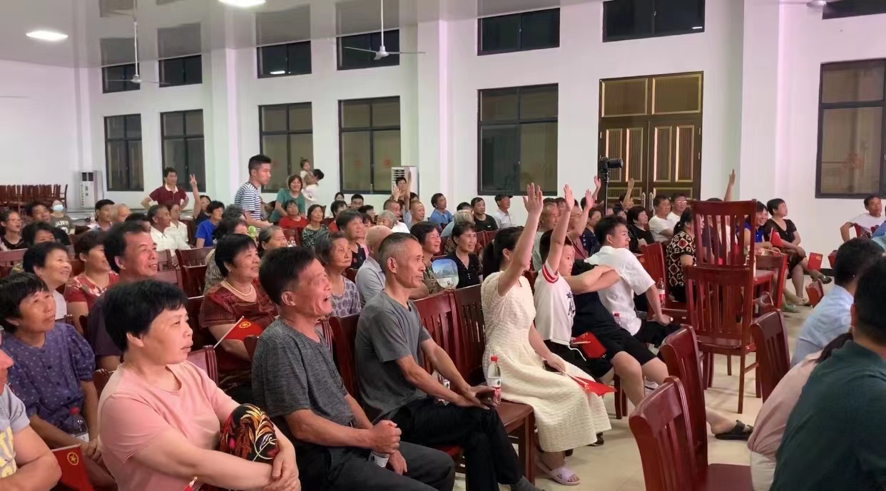 “我是中国老百姓,黄土高原是我的胸脯,黄河流水是我沸腾的热血,长城是我扬起的手臂,泰山是我站立的脚跟。我骄傲,我是中国老百姓……”袁思瑶、周金炯、何诗琦等为实践团成员们向现场观众生动地带来了《我是中国老百姓,我骄傲》和《“小家”筑“大家”,共同富裕惠大家》文艺微宣讲。作为新时代青年,成员们以朗诵和演讲两种不同的形式,将较为难懂的专业名词口语化、简单化,将红色知识传递给村民们,情感真挚,激情四射,赢得了现场听众们的阵阵掌声。“没想到党课这么有趣,形式这么多样,听完这群年轻孩子的宣讲,我的激情一下子就被点燃了。”居住在金峨村的村民孙瑞玲竖起大拇指点赞。