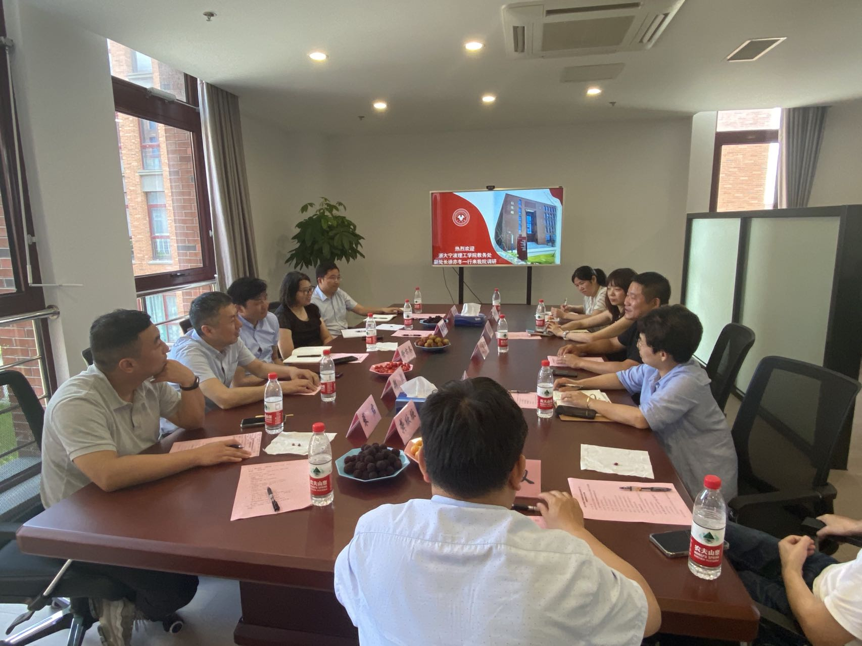 为深化产教融合,推进现代产业学院建设,6月22日下午,教务处副处长徐亦冬、信息学院党委副书记郑毅、副院长陶吉利、副院长裘君及部分学院产教融合负责人等一行9人赴宁大科技学院公牛产业学院调研。宁大科技学院公牛产业学院执行院长应建华、副院长林燕、教务部副部长郑文娟等一起座谈交流。