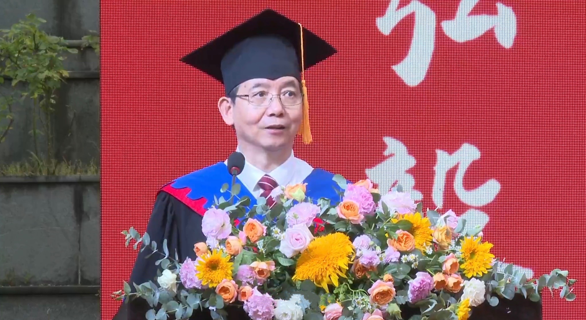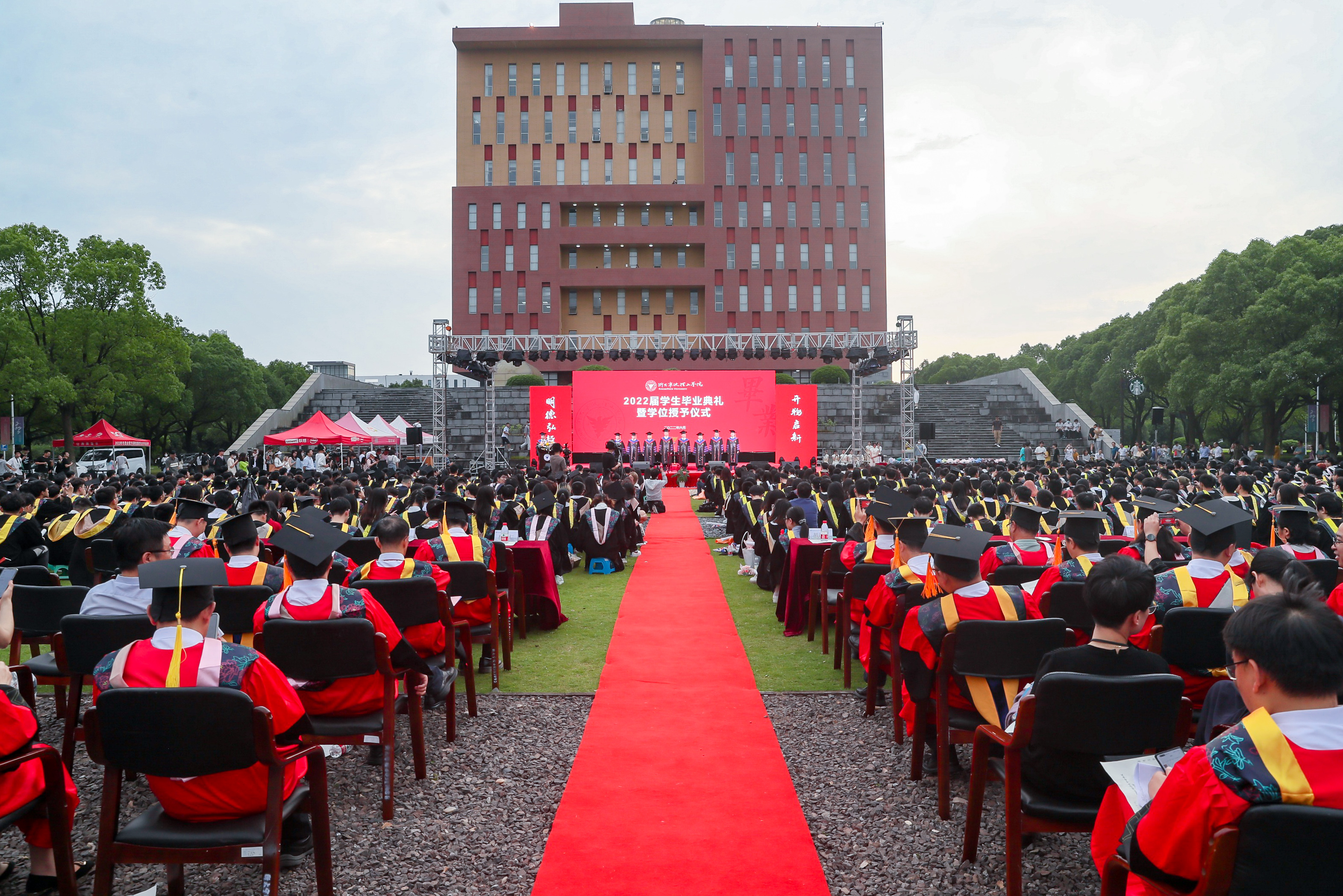 校长杨德仁院士手持学术权杖,与学校、学院领导,导师们一同步入会场。他深情寄语毕业生:“青春逢盛世,奋斗正当时。”杨德仁表示,作为公费招收的第一届学生、学校成功转设的见证者和20周年校庆的亲历者,2022届毕业生们与学校风雨同舟,以实干托举梦想,诠释了“爱校荣校践于行”。他用三句话勉励即将离校远行的同学们:志存高远,以青春之力量勇挑重担;知行并进,以青春之涌动矢志坚守;积微成著,以青春之创造接续奋斗。希望大家步伐坚定,在今后的道路上久久为功、厚积薄发,将个人梦融入中国梦,努力成长为栋梁之才。母校永远是大家最坚强的后盾、最温柔的港湾!