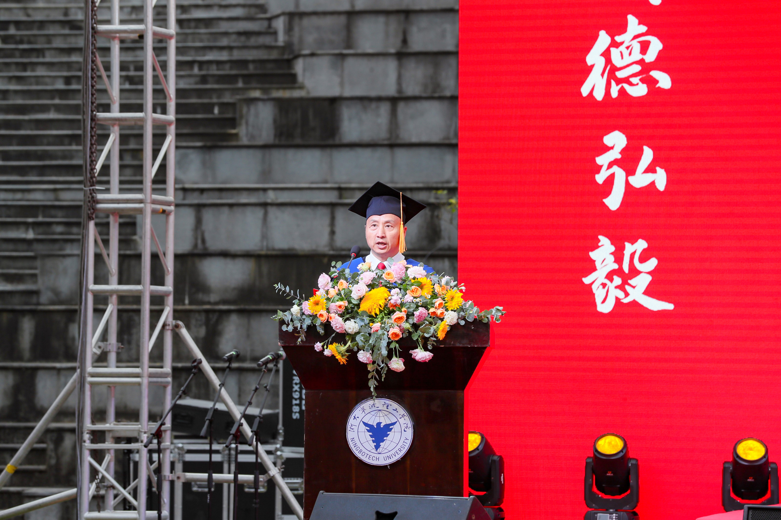 6月9日下午,我校2022届学生毕业典礼暨学位授予仪式在图书馆东侧露天广场举行。本次毕业典礼通过现场和网络直播两种方式进行,学校领导、各部门、各单位负责人、各学院领导班子、辅导员、教务员、毕业班班导师、教师代表,全体毕业生在现场参加典礼。典礼由学校党委副书记冯建波主持。