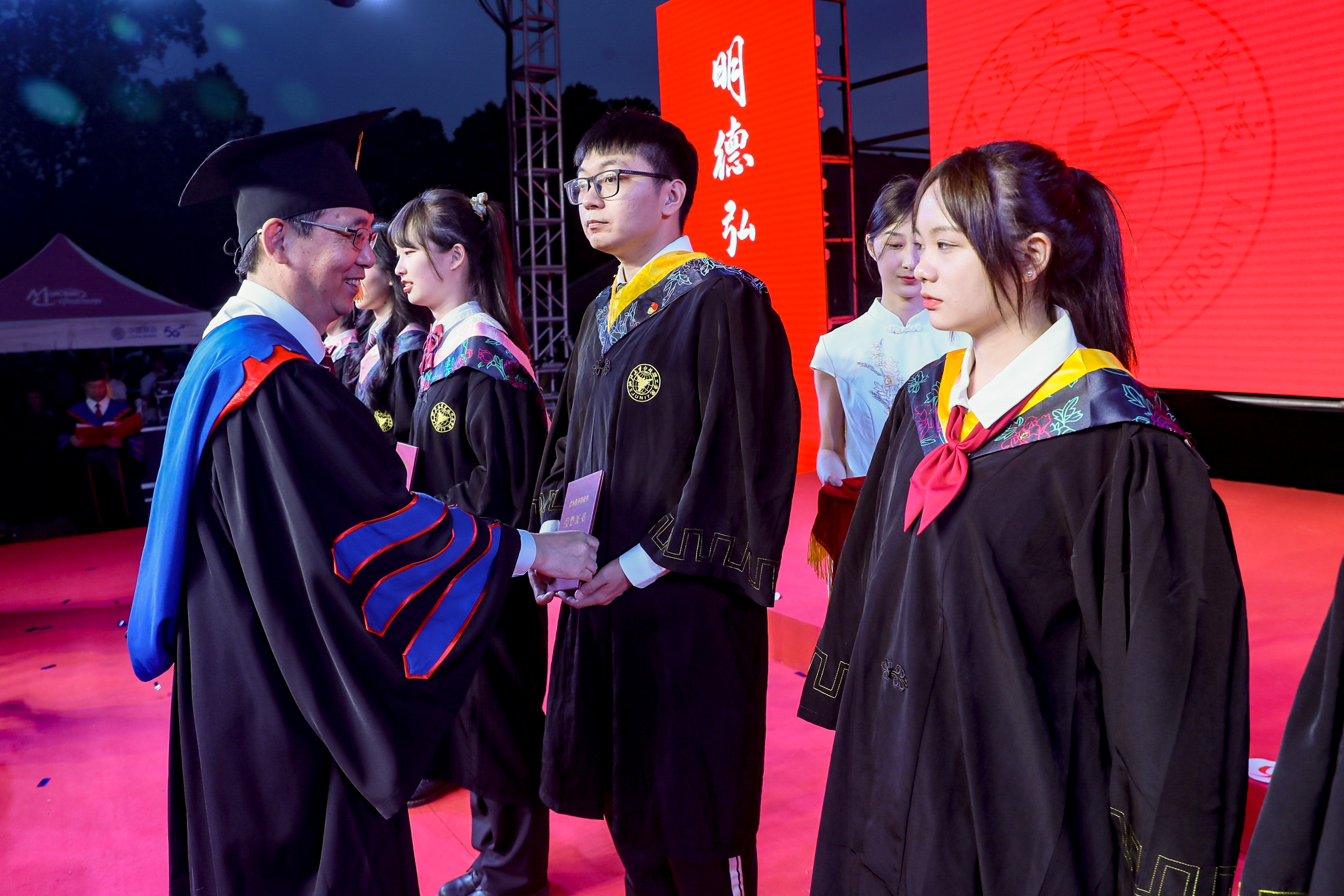 党委书记胡征宇、校长杨德仁为国内外升学毕业生代表、优秀毕业生代表表彰。副校长鲁东明宣读2022届优秀毕业生、报名两项计划和考入双一流或全球百强高校毕业生名单。