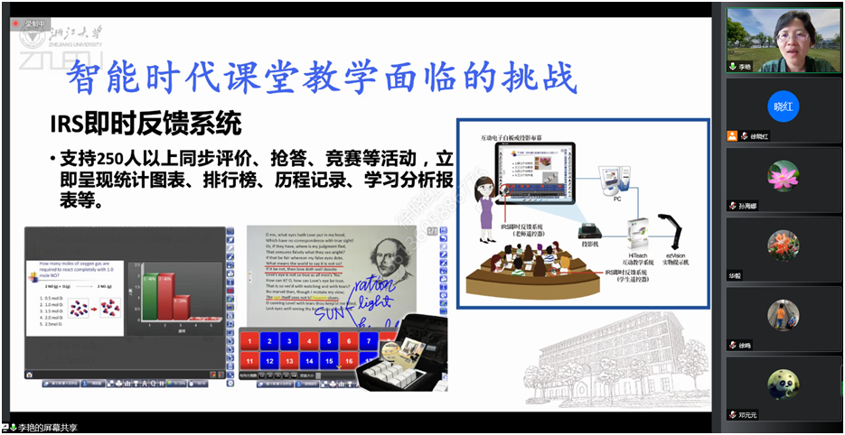 在互动环节,与会教师针对数字化改革、教学实践等方面的问题,与李艳教授进行充分交流。此次培训不仅是一次教学能力提升培训,也是一次学校教学数字化改革的研讨会,参加培训的教师进一步理解和深化了学校教学数字化改革共同参与、共同体验、共同建设的“共同体”认识,更加坚定了教学数字化改革的信心。