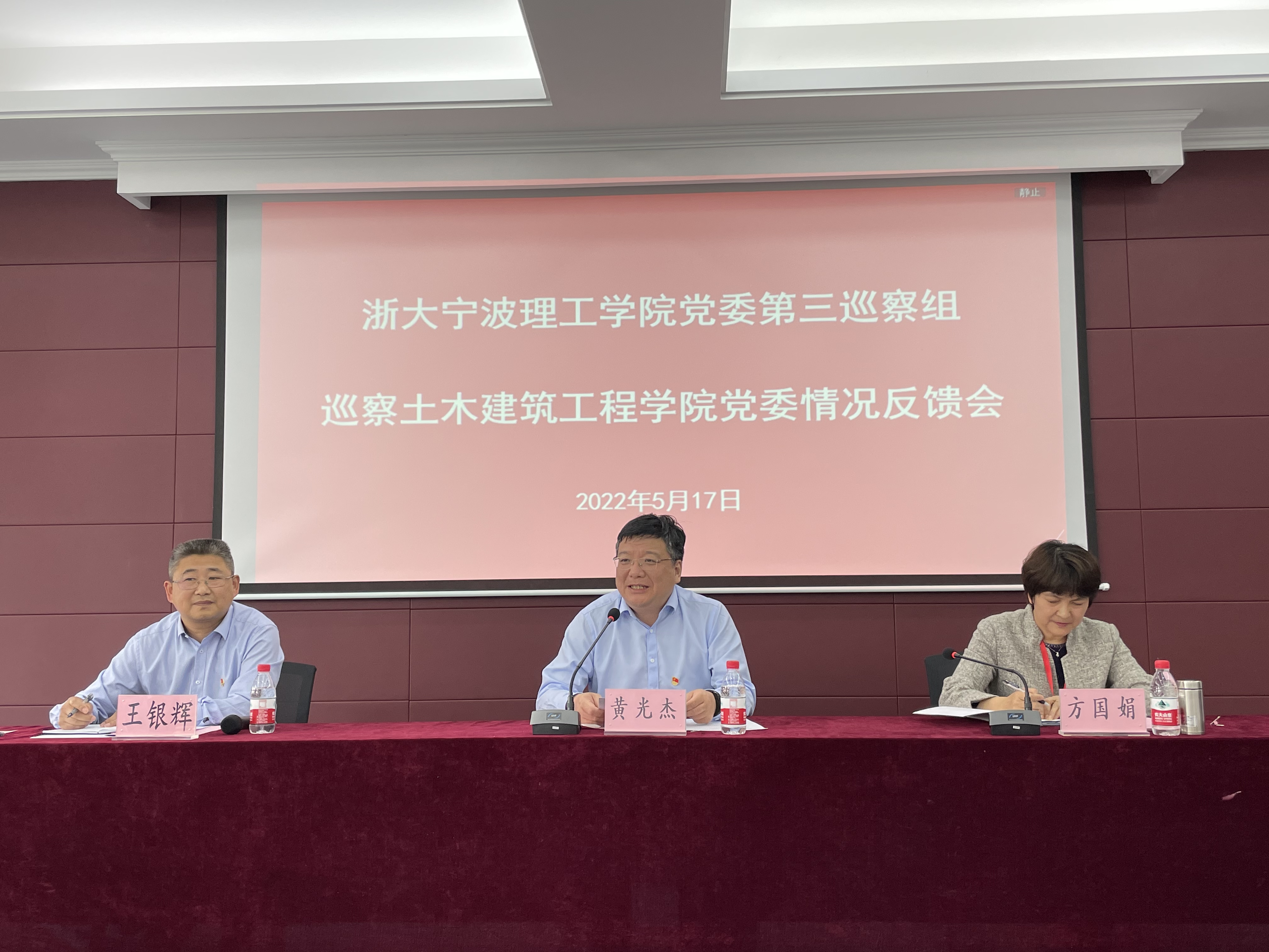 第三巡察组组长方国娟作巡察情况反馈。她指出,2018年以来,土建学院党委贯彻落实省、市、校各级党委工作部署,不断加强党的建设,努力提高人才培养质量,各项事业取得较好发展。作为我校首个“全国党建工作标杆院系”培育创建单位顺利完成验收,教工第二党支部获批“全国党建工作样板支部”培育单位,学院党委先后获首批全省高校党建示范群、全省高校先进基层党组织、“甬城育人先锋”先进基层党组织等荣誉,“土木工程”省级一流学科(B类)、市级重点学科(A类)完成建设并通过验收,土木工程专业入选省级一流本科专业建设点。但在巡察中也发现了一些问题,主要是:学习贯彻党的理论路线方针政策和党中央决策部署不够深入;党委在谋划、推动学院事业发展上领导核心作用发挥不够充分;落实立德树人根本任务不够坚强有力;落实意识形态工作责任制不够扎实;全面从严治党主体责任落实不够到位;纪委落实监督责任不够有力;纠治“四风”问题不够彻底;廉政风险防控机制不够完善;党内政治生活不够严肃;议事决策机制运行不到位;基层组织建设不规范;持之以恒抓整改意识不强,部分整改工作落实不到位;巩固整改成效不够有力,制度建设有待加强。