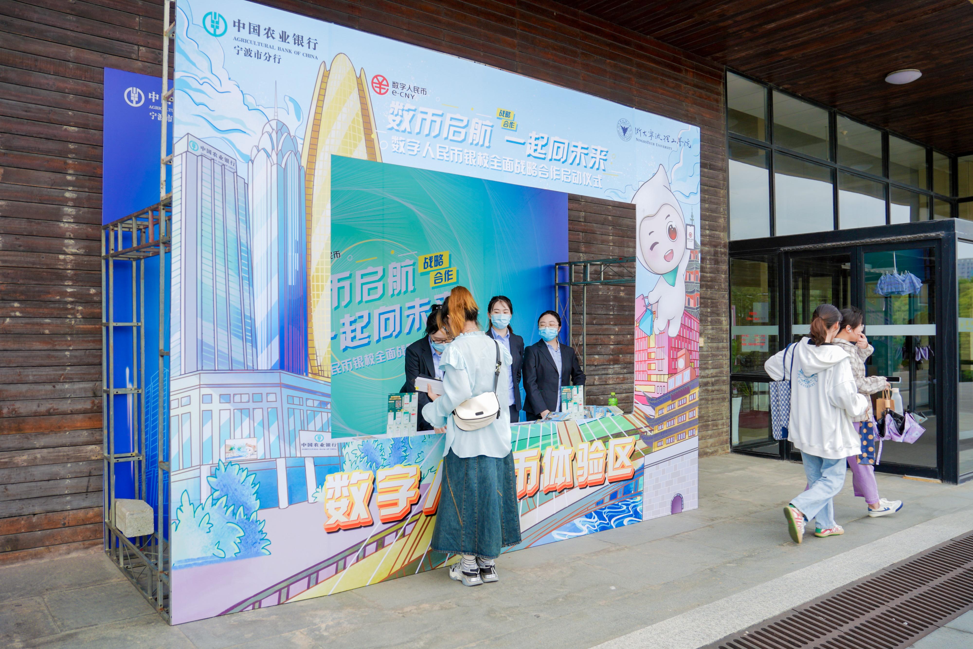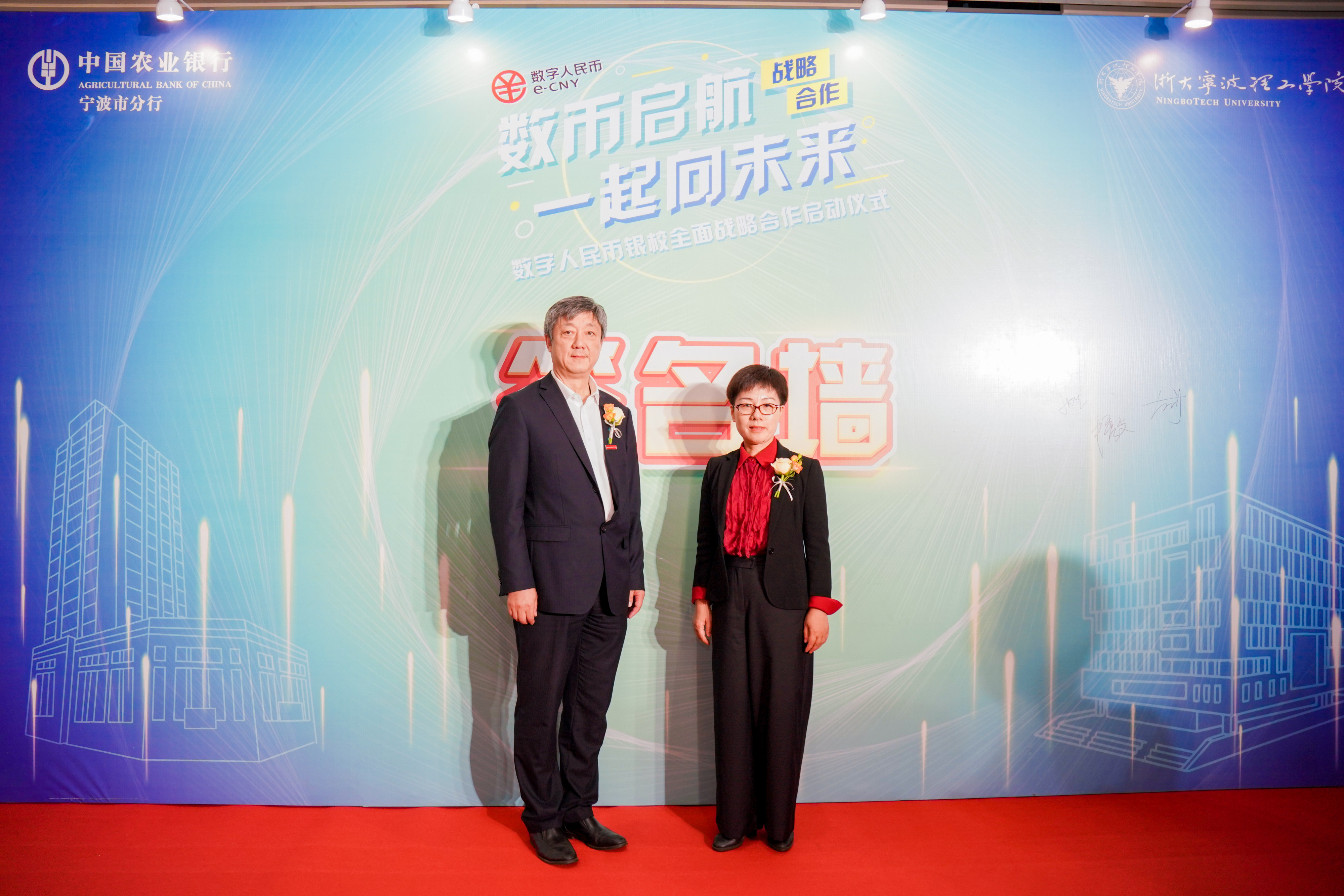 为积极响应国家数字人民币发展战略,推动数字人民币走进校园,5月10日,我校与中国农业银行宁波市分行共同举办“数币起航,一起向未来”数字人民币银校全面战略合作启动仪式。浙大宁波理工学院党委书记胡征宇、农行宁波市分行党委书记严秀文出席启动仪式并致辞。参加启动仪式的嘉宾还有宁波市地方金融监管局党组成员刘定,浙大宁波理工学院党委副书记冯建波,农行宁波市分行党委委员、副行长孙国锋,农行宁波市分行党委委员、副行长张坚以及浙大宁波理工学院和农行宁波市分行相关部门主要负责人。