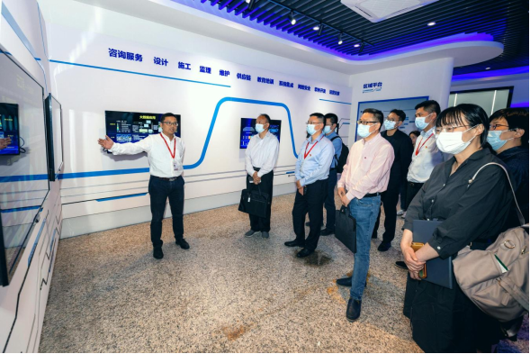 在公司领导的陪同下,冯建波、鲁东明一行参观了中国通信服务宁波公司的展厅,全面了解了公司在数字基建、运营维护、智慧应用等方面的业务发展情况。