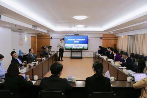 4月20日,浙江药科职业大学党委书记陈厥祥、校长娄小娥等党政班子一行来校调研,共同交流本科院校建设经验。浙大宁波理工学院党委书记胡征宇参加座谈,介绍学校发展情况。
