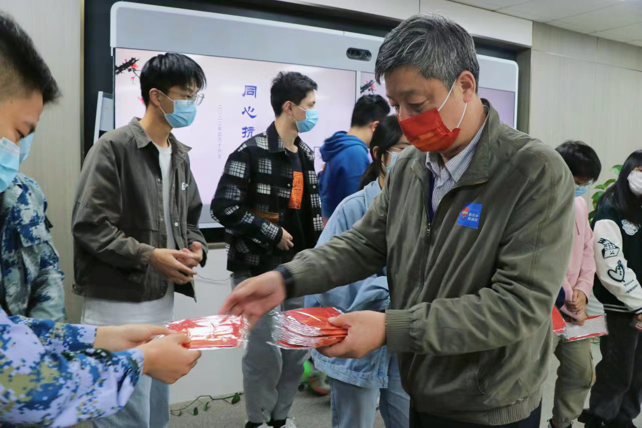 党委副书记李凤旺给同学们提出了三点意见。一是要认清当前疫情的形势,不断提高认识;二是要达成共识,克服防疫工作的困难;三是希望大家做个小播种机,团结一致。帮助传达学校的防疫措施,营造合力向上的良好氛围。