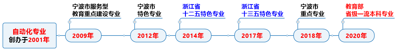自动化专业是学校最早设立的工程技术类专业之一。入选2019年度省级一流本科专业建设点,是浙江省“十二五”、“十三五”普通本科高校新兴特色专业,宁波市第四批高校重点建设专业。该专业以区域经济发展需求为导向,以“高质量应用型创新人才”为主要目标,专业人才培养紧扣外部需求,特色显著,形成了以自动控制为核心,人工智能与工业互联网为两轮,“产教融合”、“赛教融合”、“科教融合”为驱动的“一核两轮三驱动”知行合一式新工科人才培养模式。专业现有专任教师18人,其中教授4人,副教授7人,博士15人;拥有省优秀教学团队1个。专业获校友会2022年应用型专业5★评价,在全国应用型专业排名29,浙江省内应用型专业排名第一。