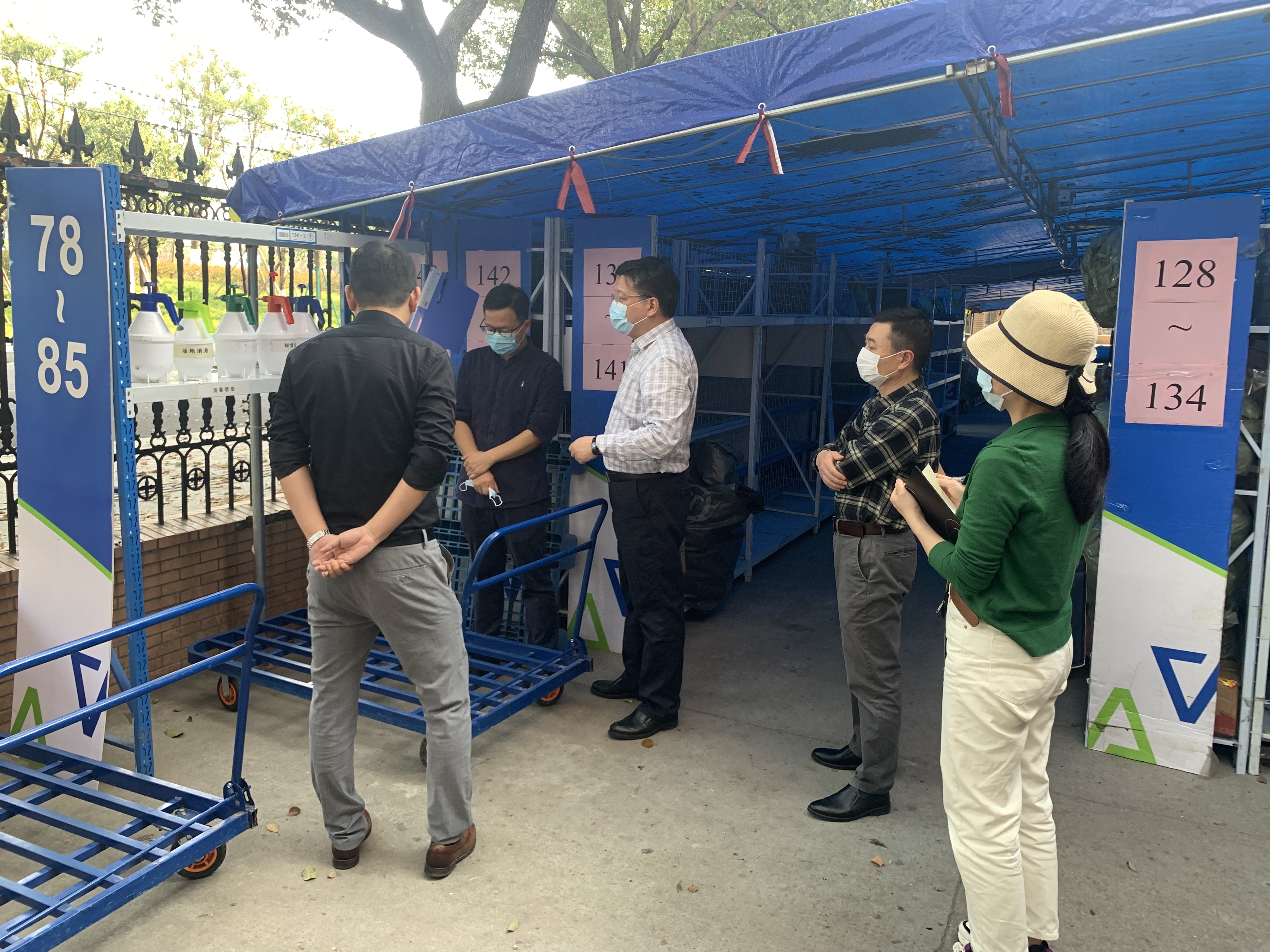 督查组一行首先重点检查了菜鸟驿站快递防疫管理情况。检查发现公司已在站内设置四重消杀方案,分别在卸货区、上架区、分类架、场地区进行消杀,站内快递采取集中管理、消杀、设置专用拆包区域等防控措施,卸货区、取货区设有监控,但在北靠学府路围墙临时门存在监管隐患,未入驻菜鸟驿站的快递公司通过东门栅栏送快递存在管控漏洞,快递物流消毒管理还须进一步强化等。督查组建议立即制定专项管理制度和监管、抽查制度。